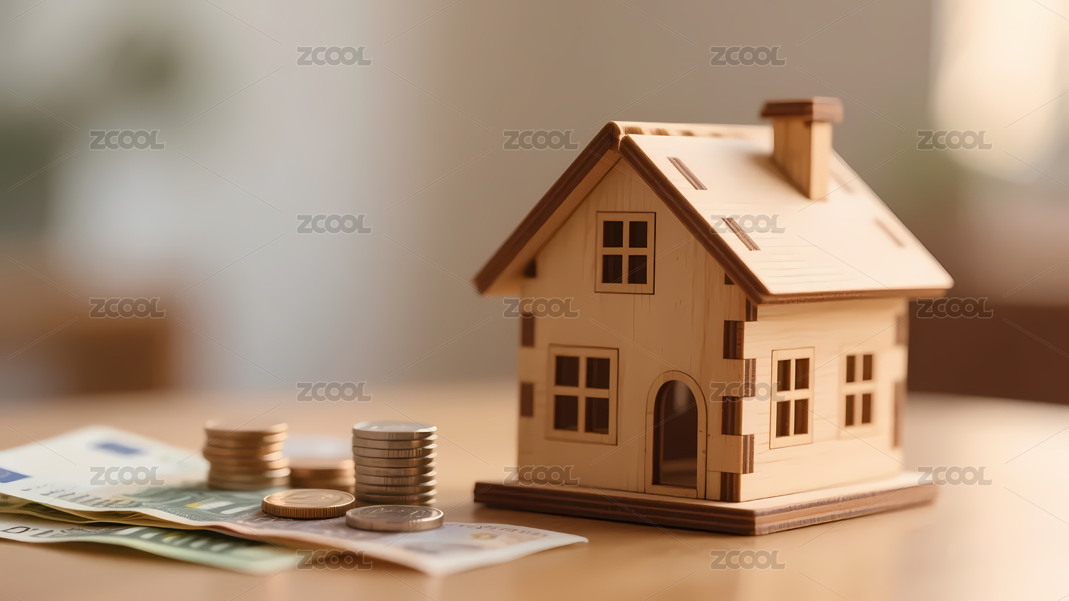 木质房屋欧元纸币