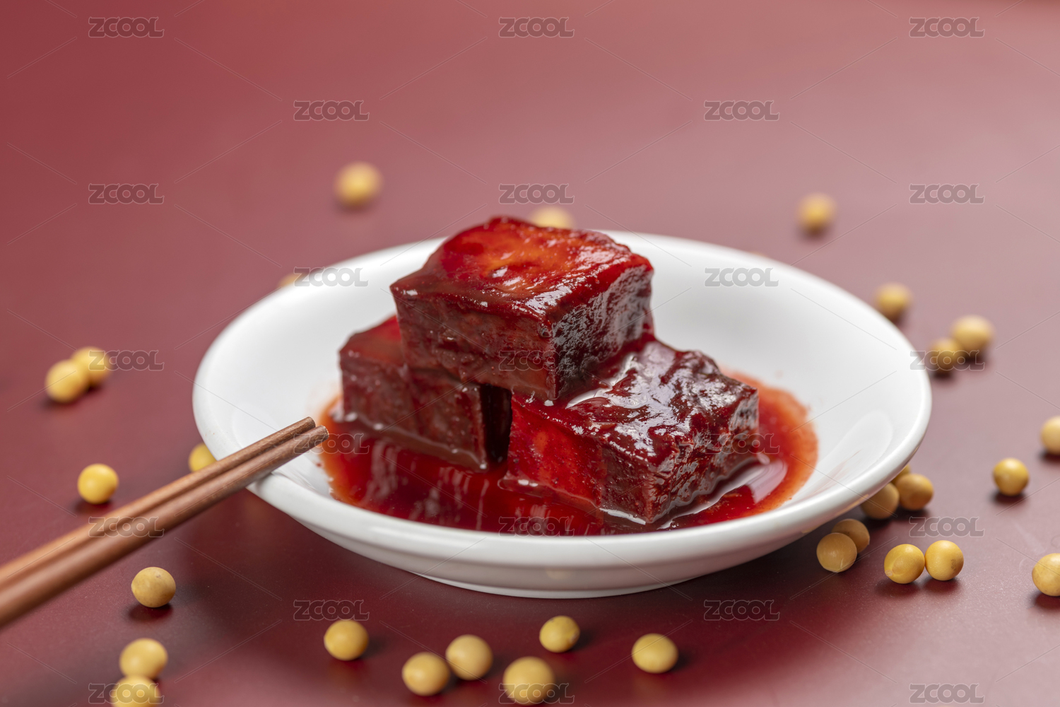 白色背景上摆放的红油腐乳