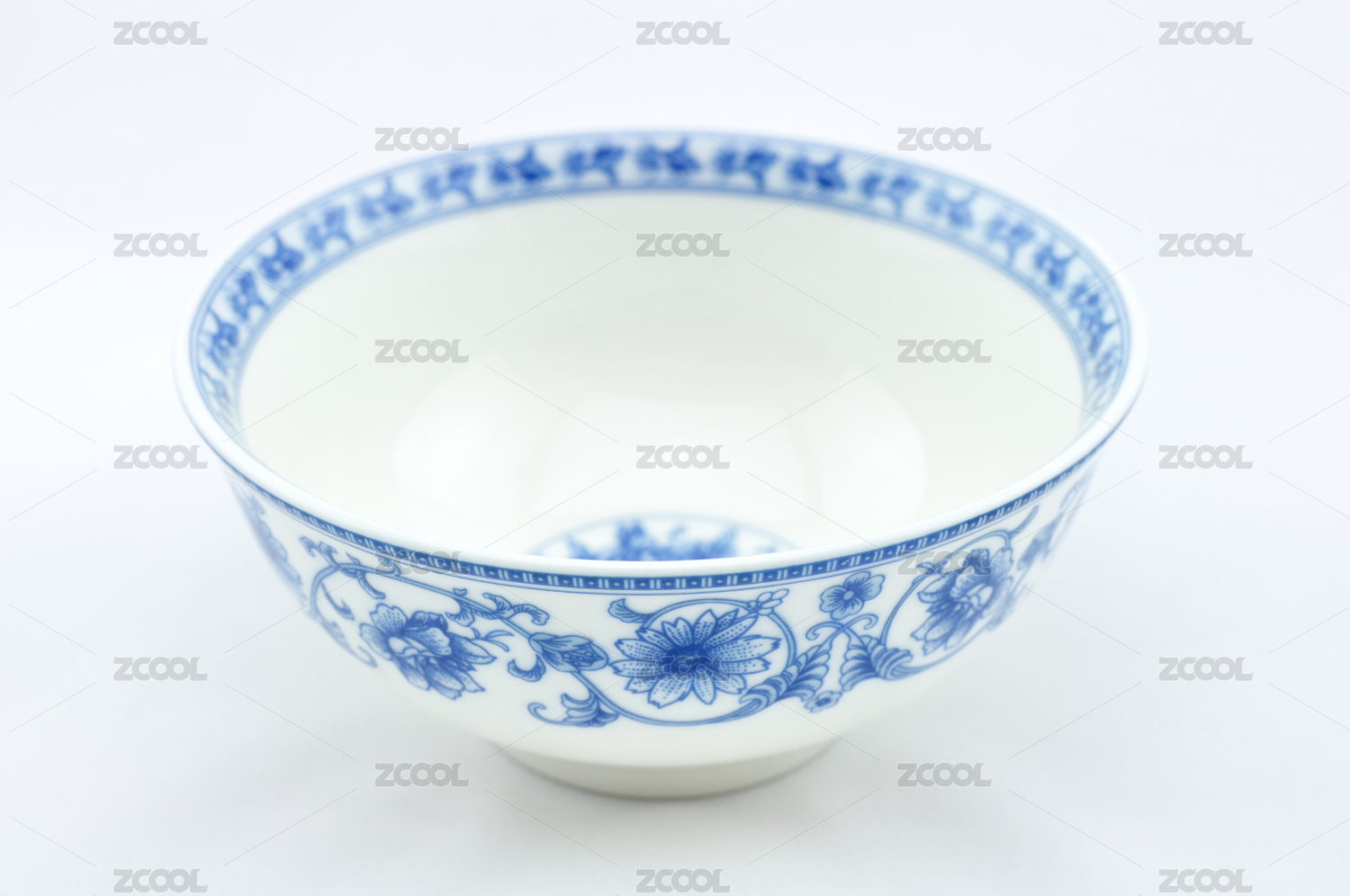 白背景上一只空青花瓷碗