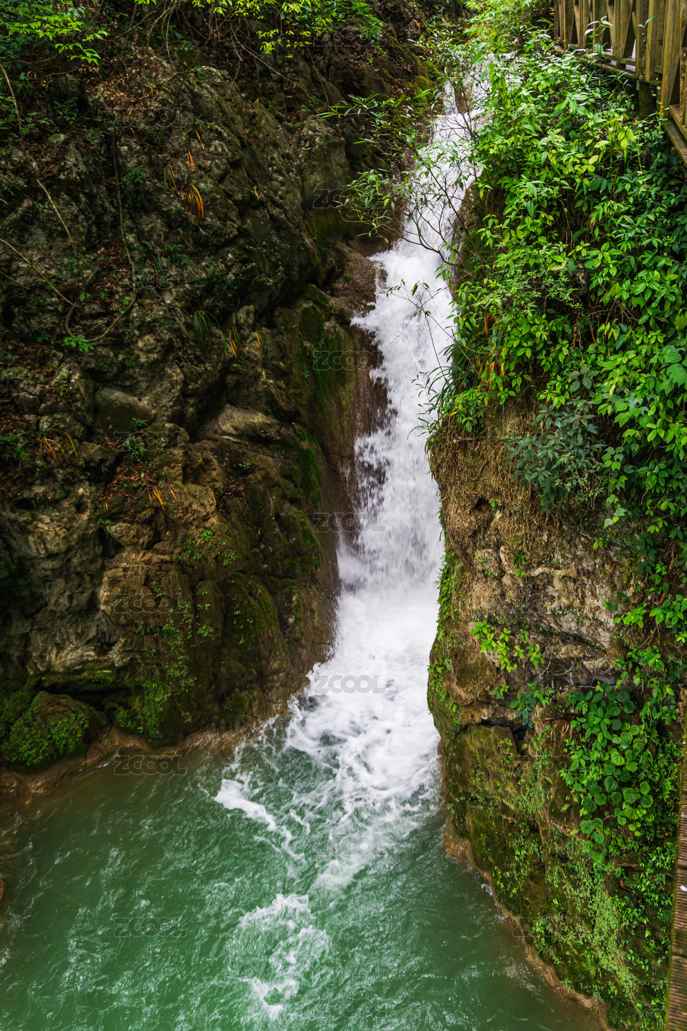 湖北南漳县翡翠峡山涧瀑布峡谷自然景观