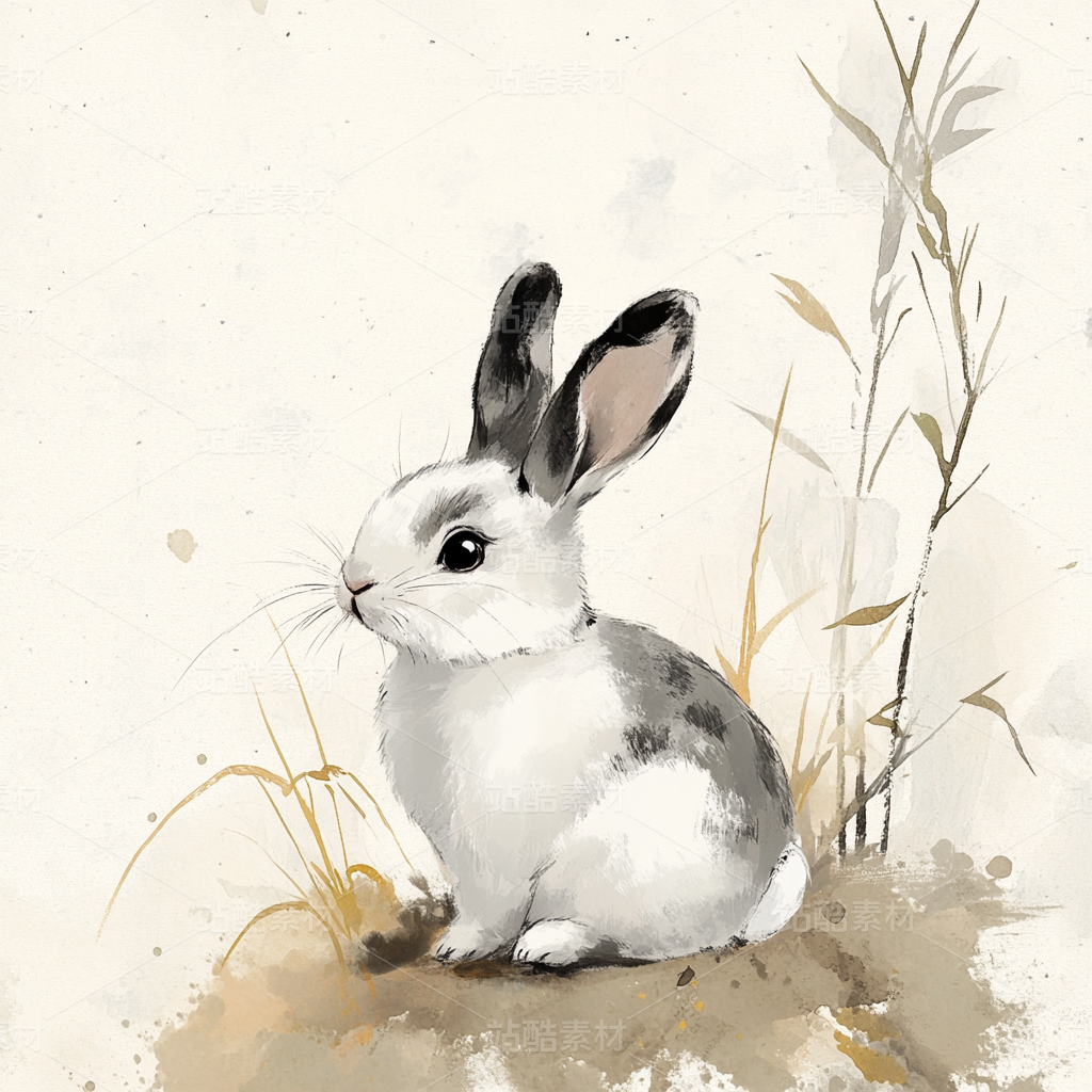 水墨画兔子