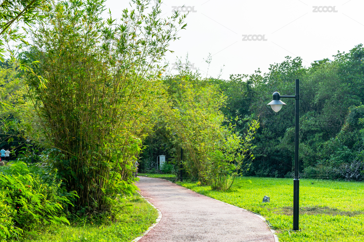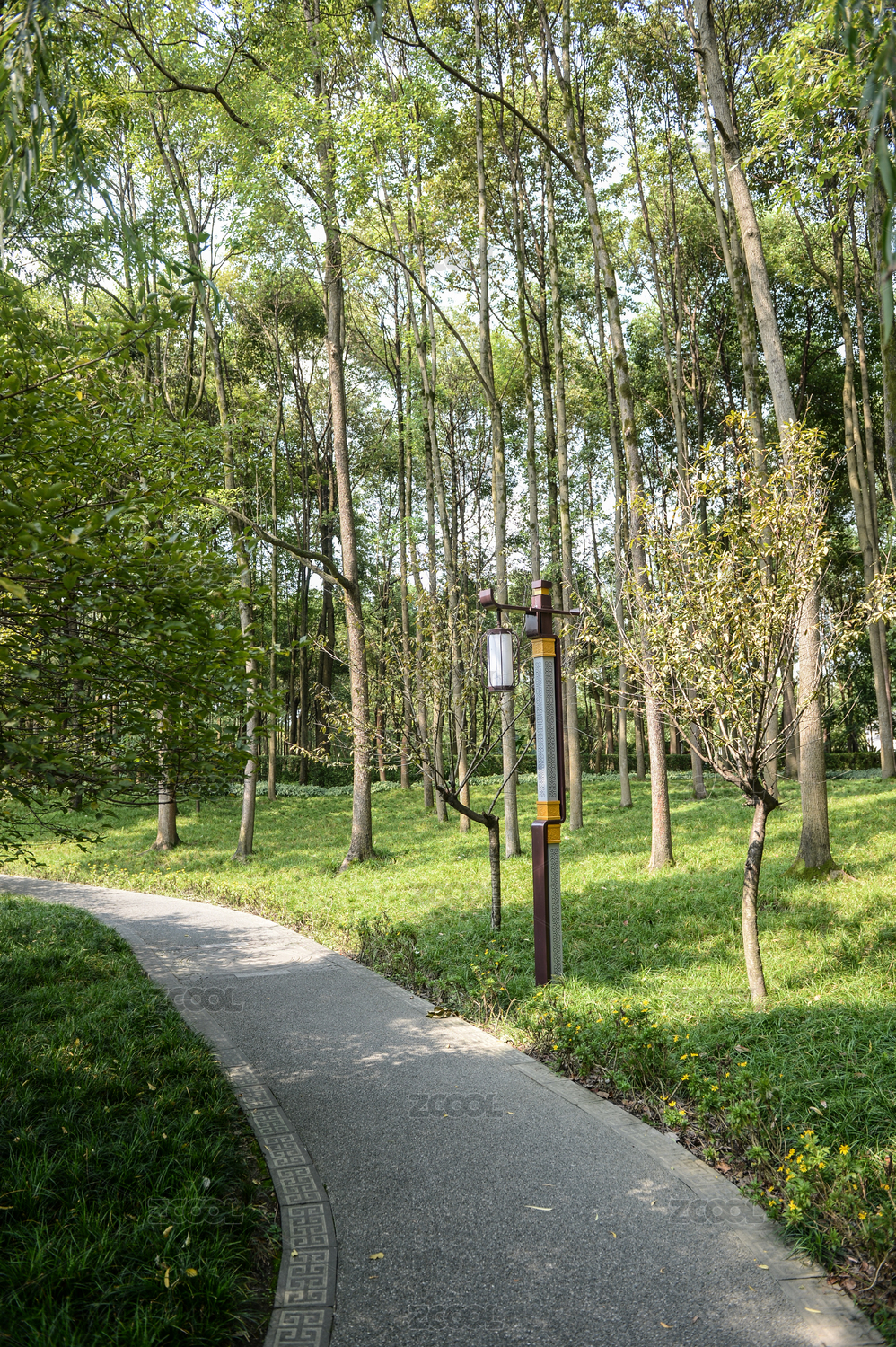 中国南方城市公园里阳光下的草坪走廊