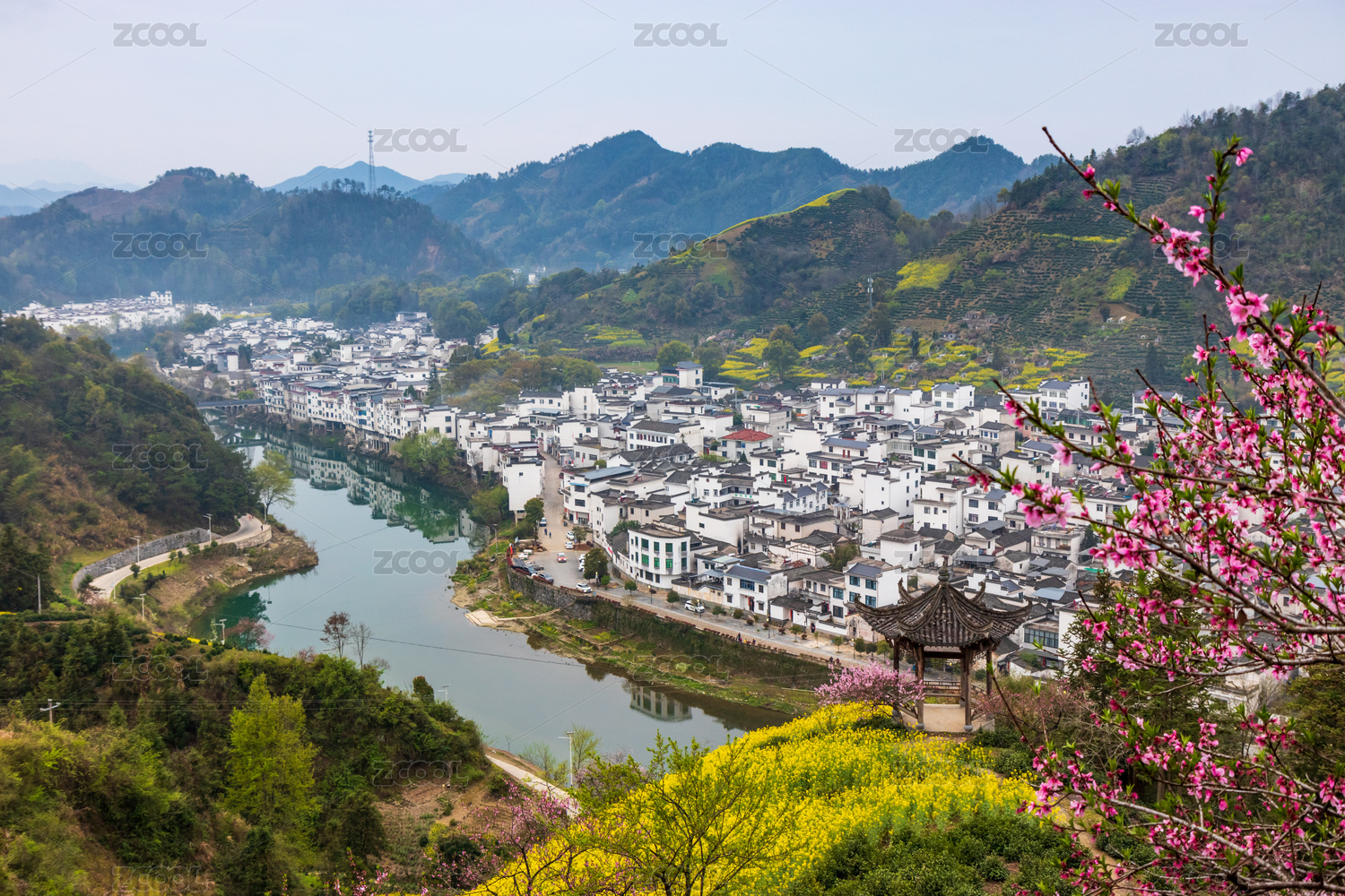 江西,婺源,汪口,古村,古村落,民居,江边,俯视,俯拍,桥