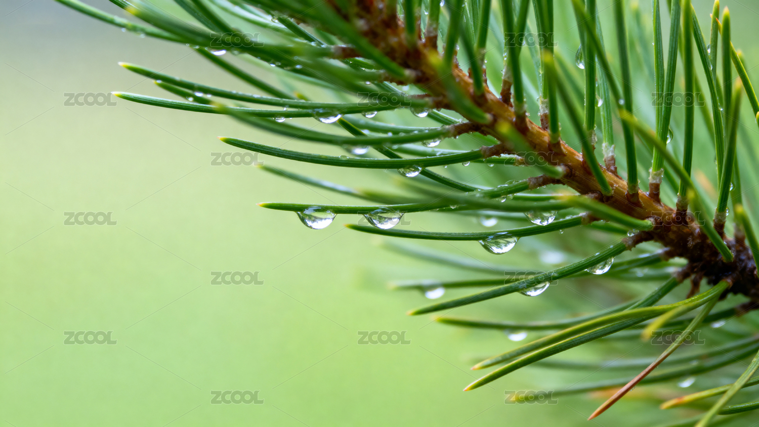 松针树枝露水特写