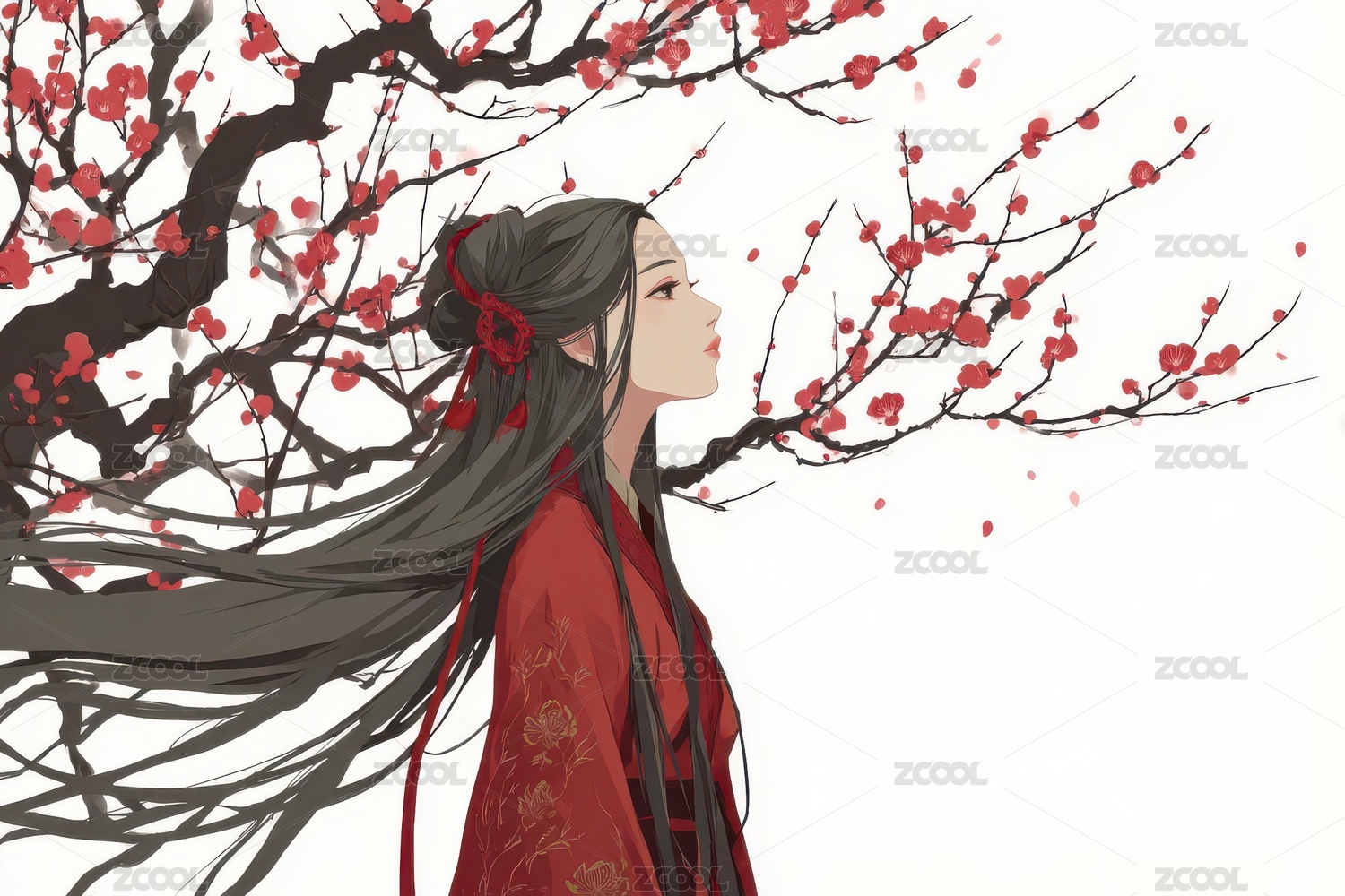 梅花,古风,古装,灯笼,故事,女孩,女人,可爱,笑容,开心