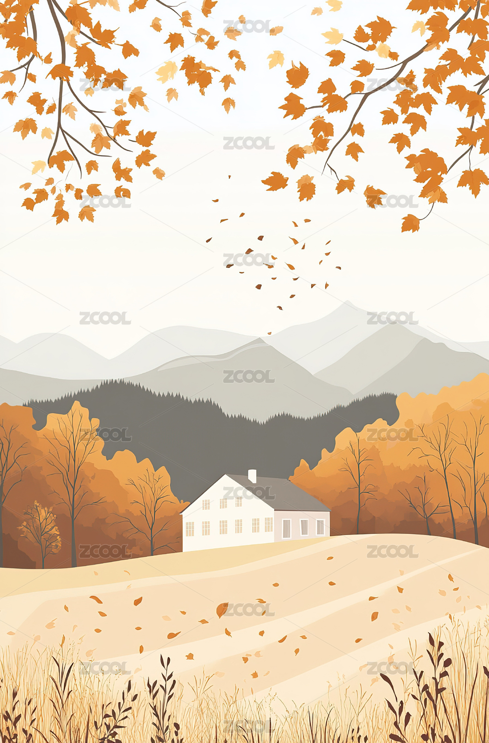 秋天风景扁平插画唯美治愈海报壁纸