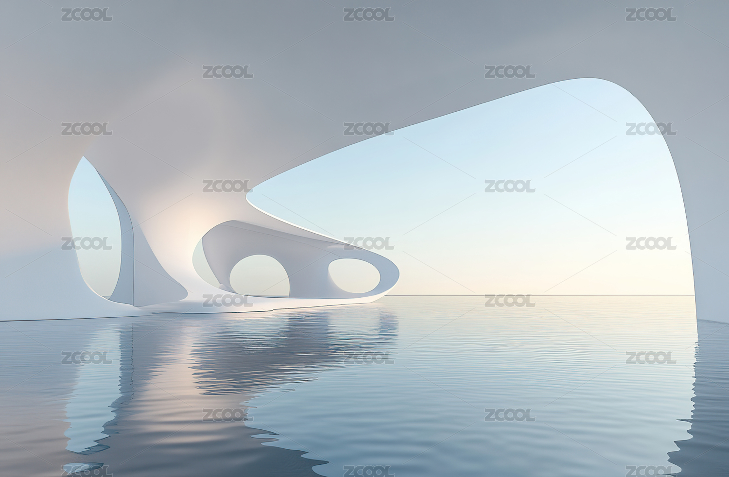 建筑,空间感,空旷,前卫,AIGC,水面,几何,线条,未来感,水