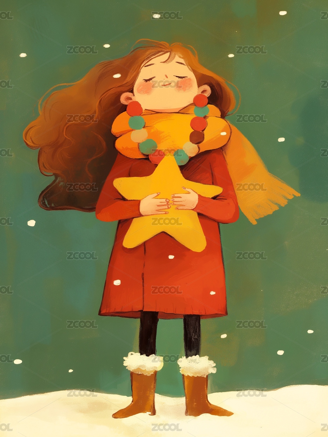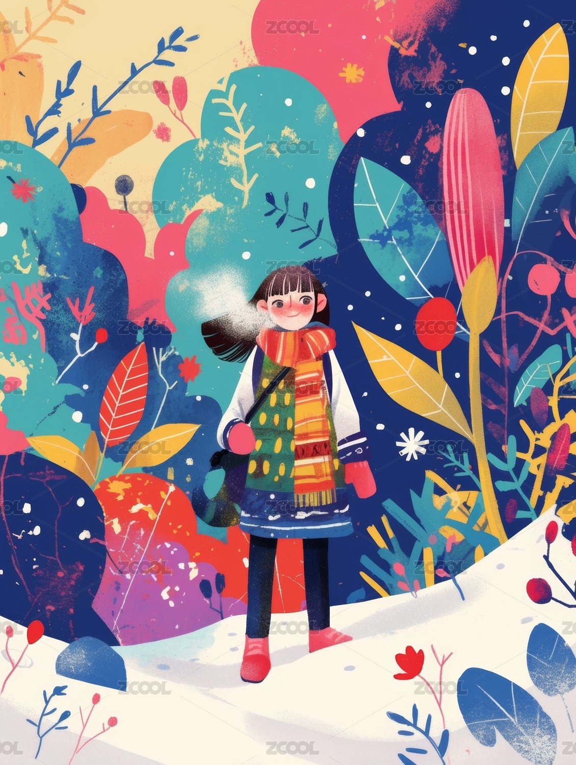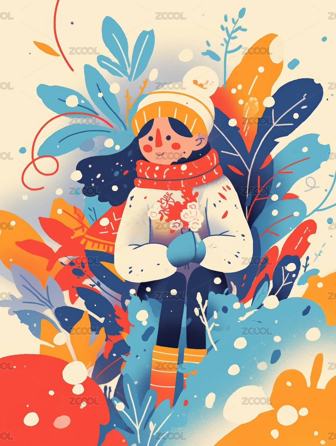 女孩,插画,过年,春节,新春,雪,大雪,温暖,保暖,过节