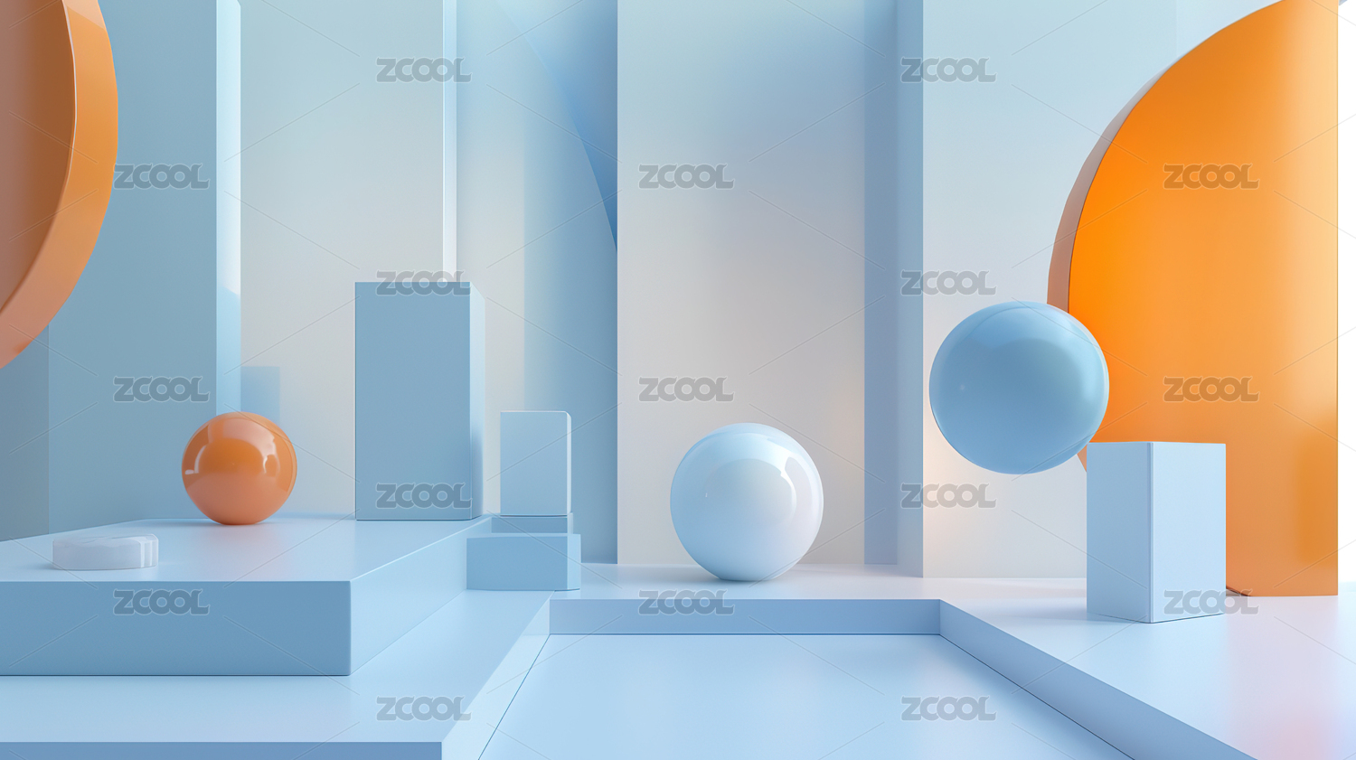 轻盈梦幻的几何球体柔和色彩的抽象艺术