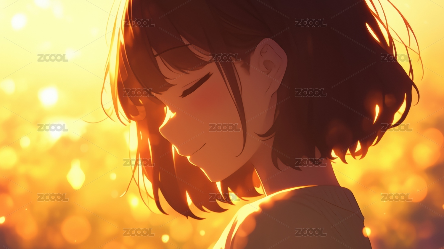 AIGCFG,日式,复古,插画,女孩,个性,孤独,流泪,留白,长发
