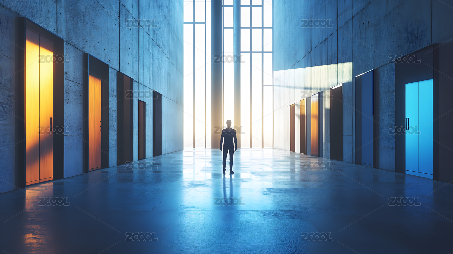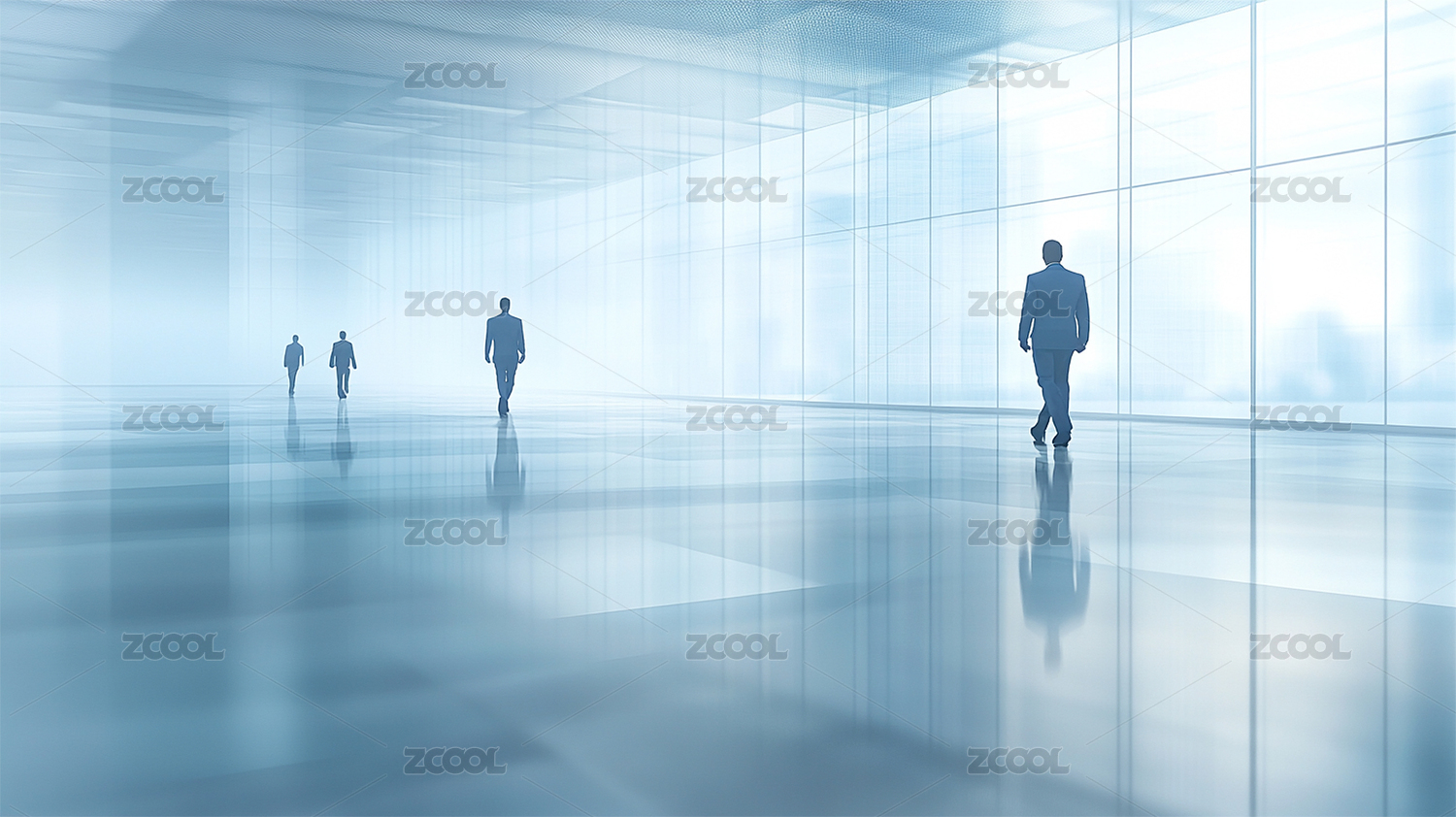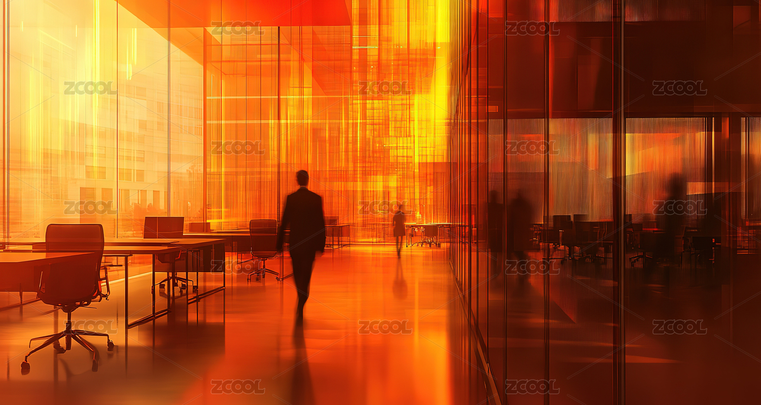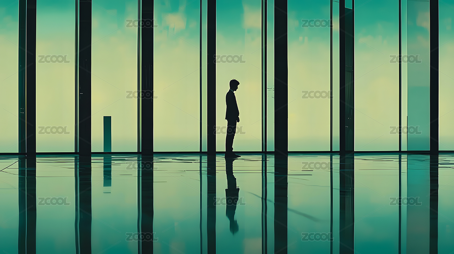 手绘彩色背景玻璃幕墙前西装男背影国漫插画