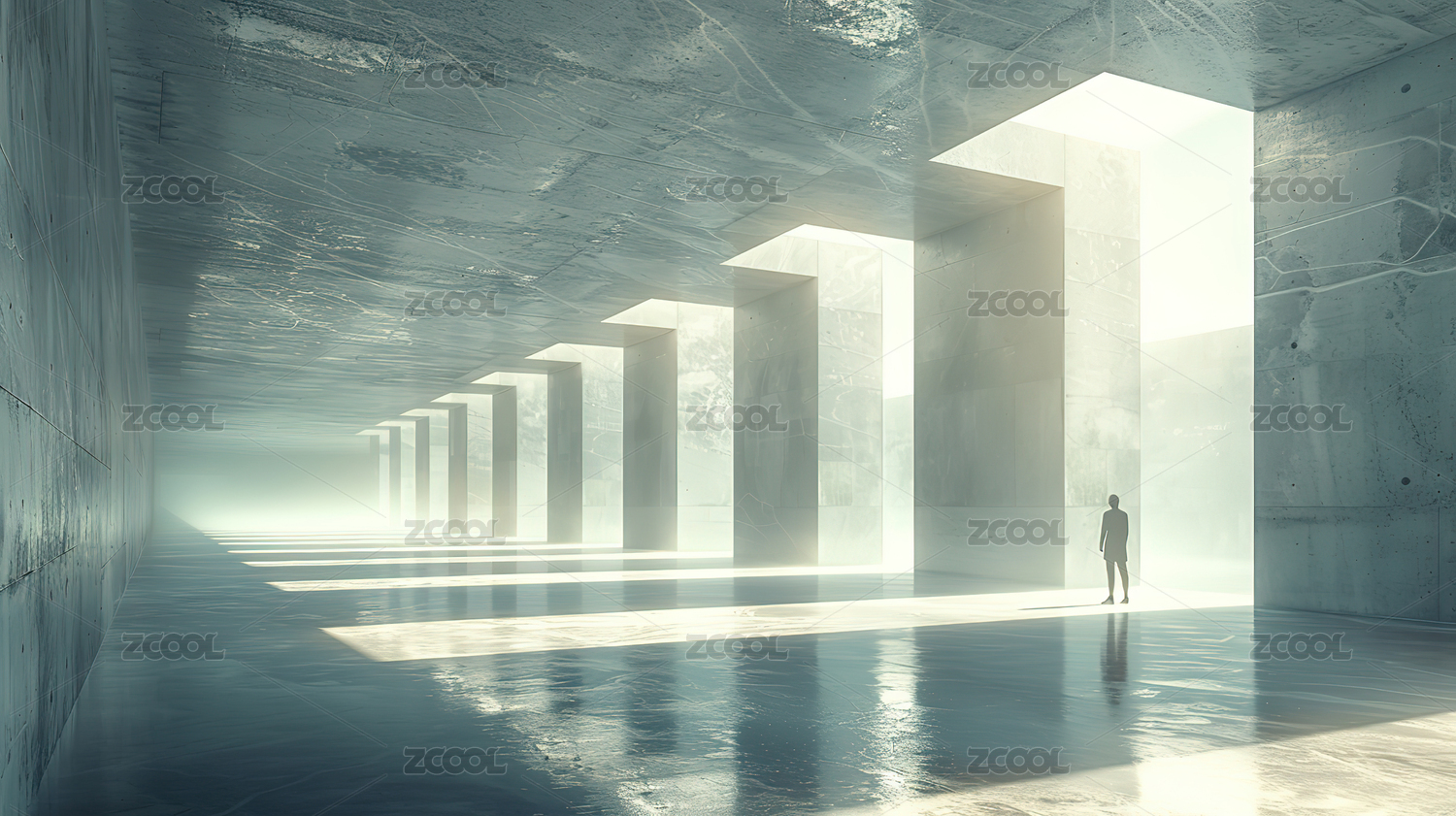 幽暗的现代极简商务办公大厅霓虹幕墙海报