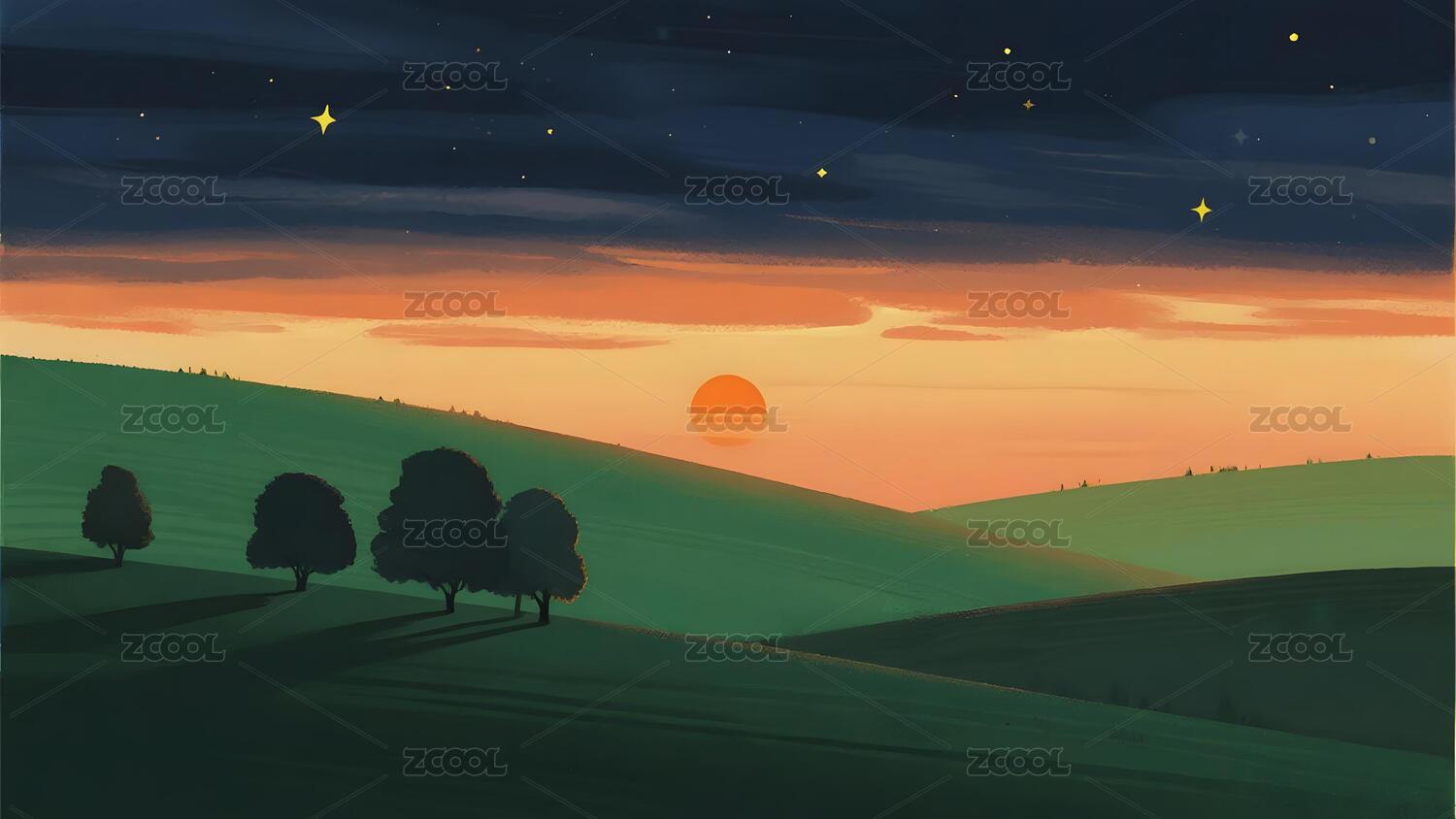 夜幕下的田园日落