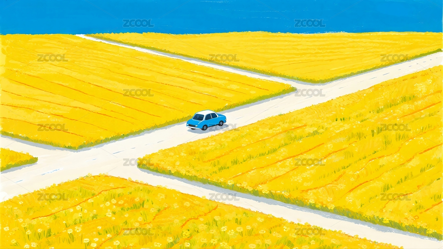一片油菜籽地治愈插画