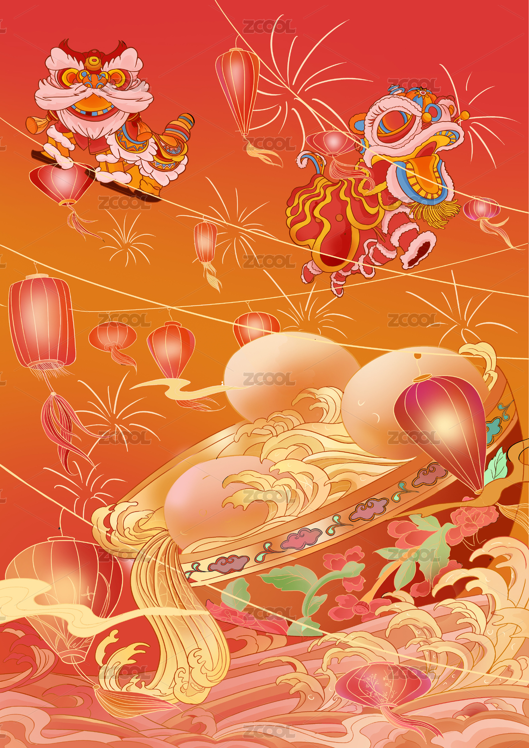 HEZODIAC2021,剪纸风,新年,红色,图案,对称,吉祥,元宝,灯笼,祥云