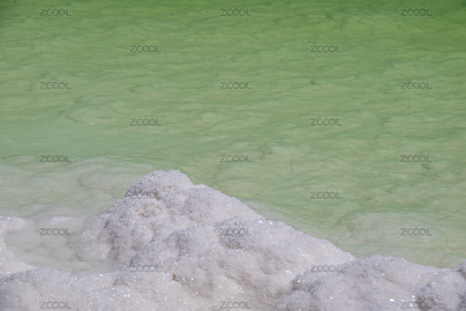 中国青海大柴旦翡翠湖 多彩湖水的细节特写