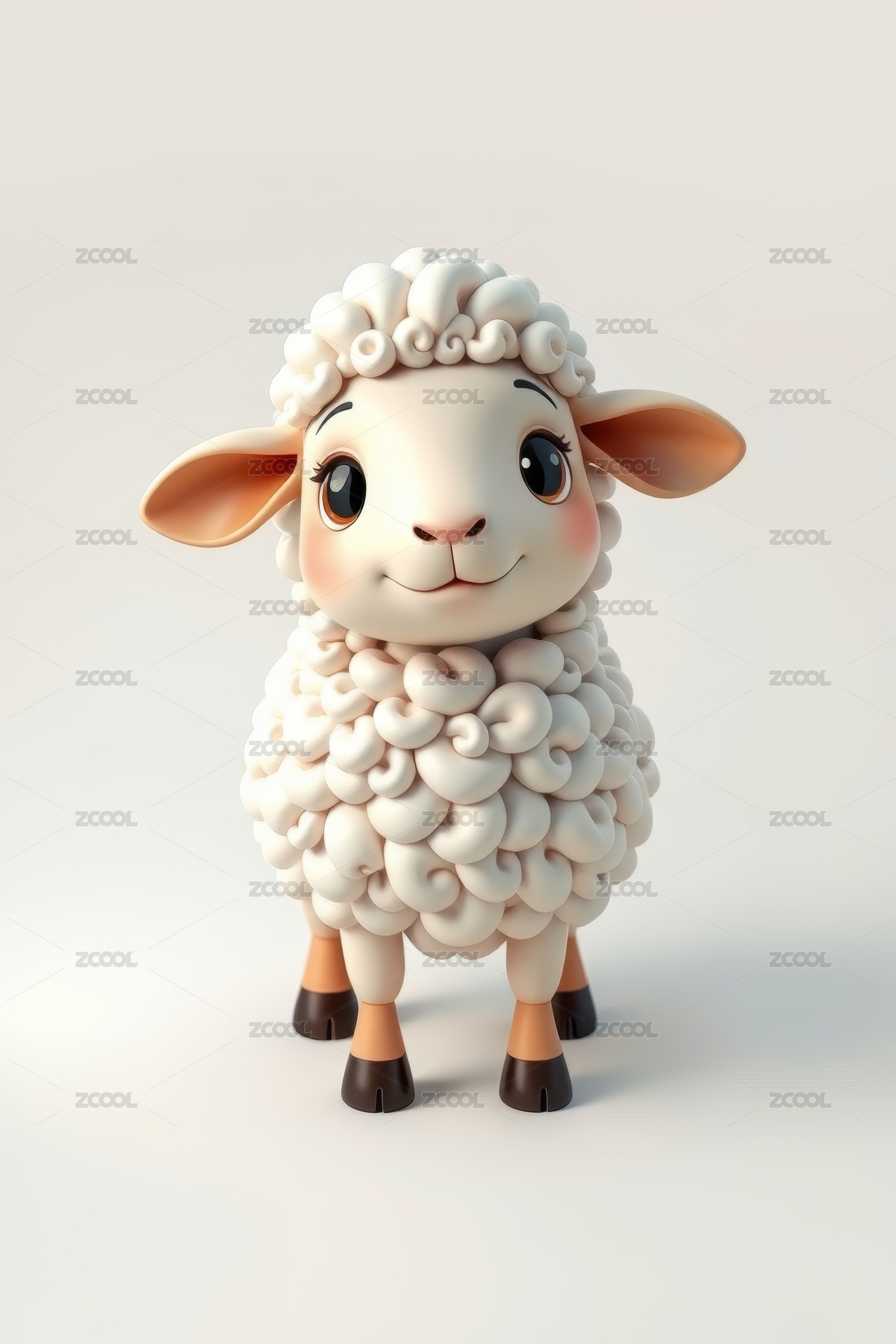 3D,动物,生肖,卡通,可爱,立体,形象,开心,微笑,羊