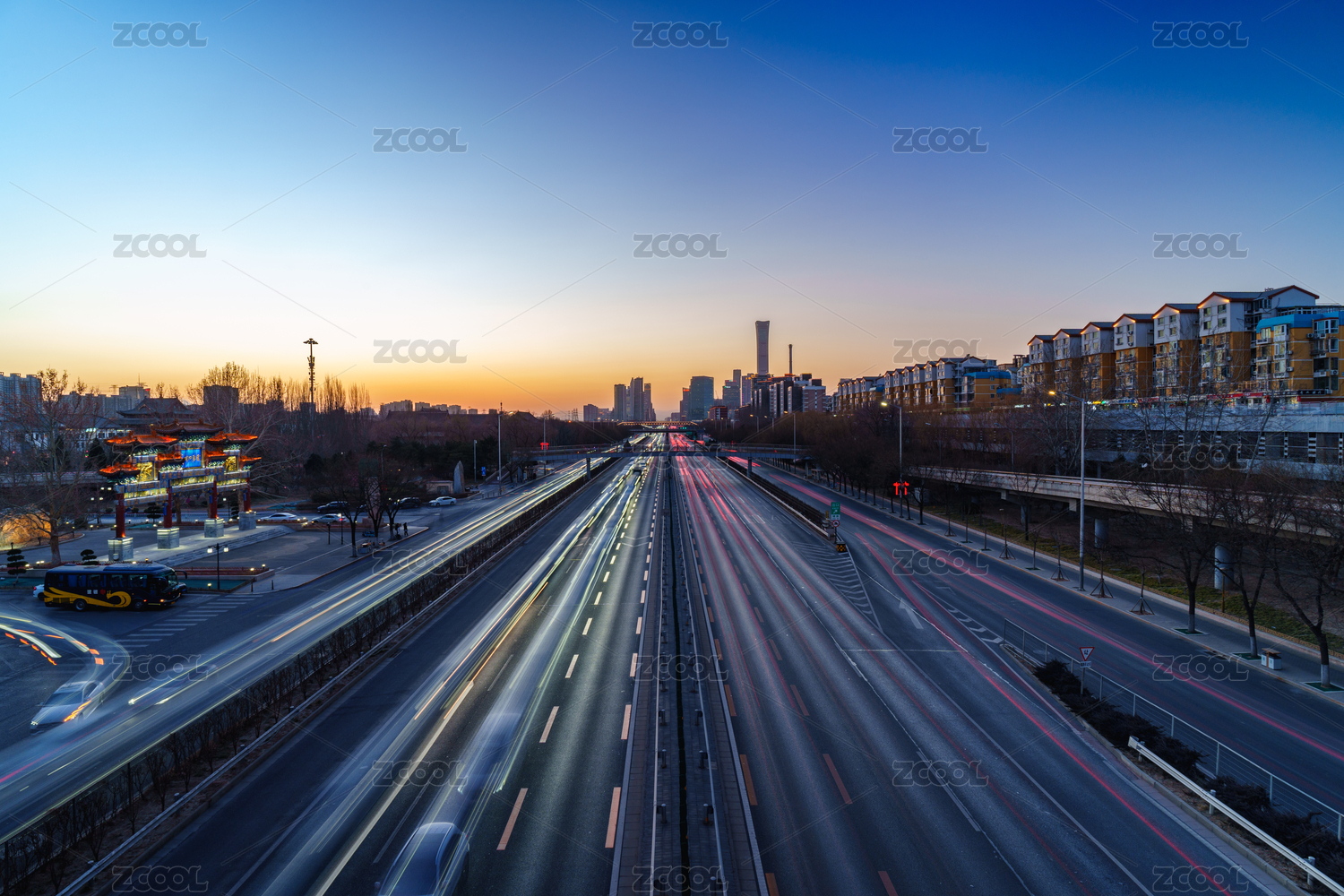 光芒连接CBD:黄昏时分京通快速路上的车