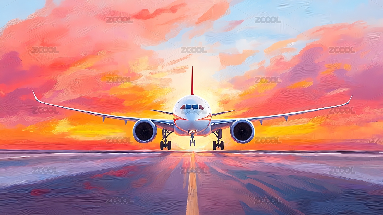 机场跑道飞机起飞航空运输旅游出发商务背景