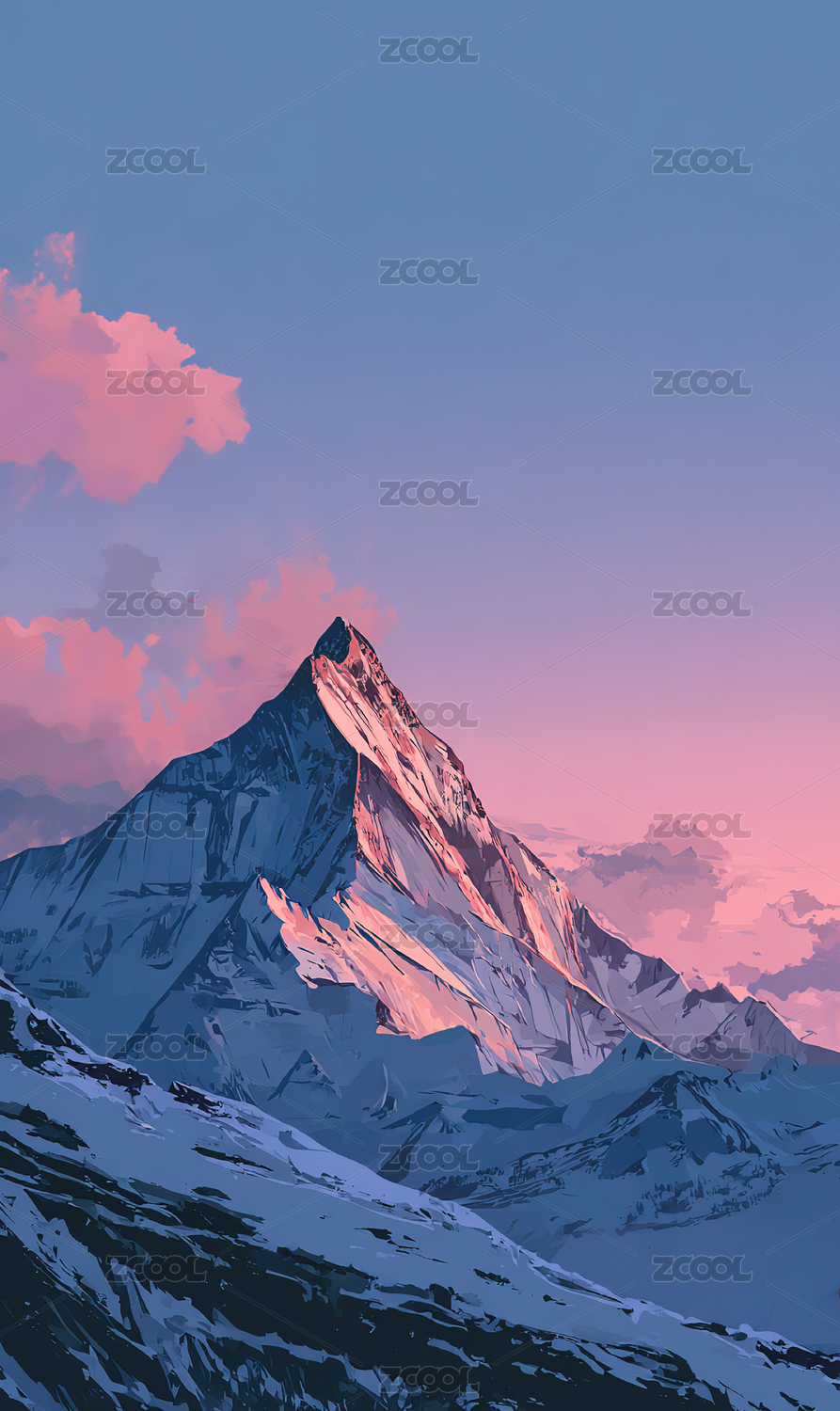 雪山巍峨壮丽雾气缭绕的冰雪世界