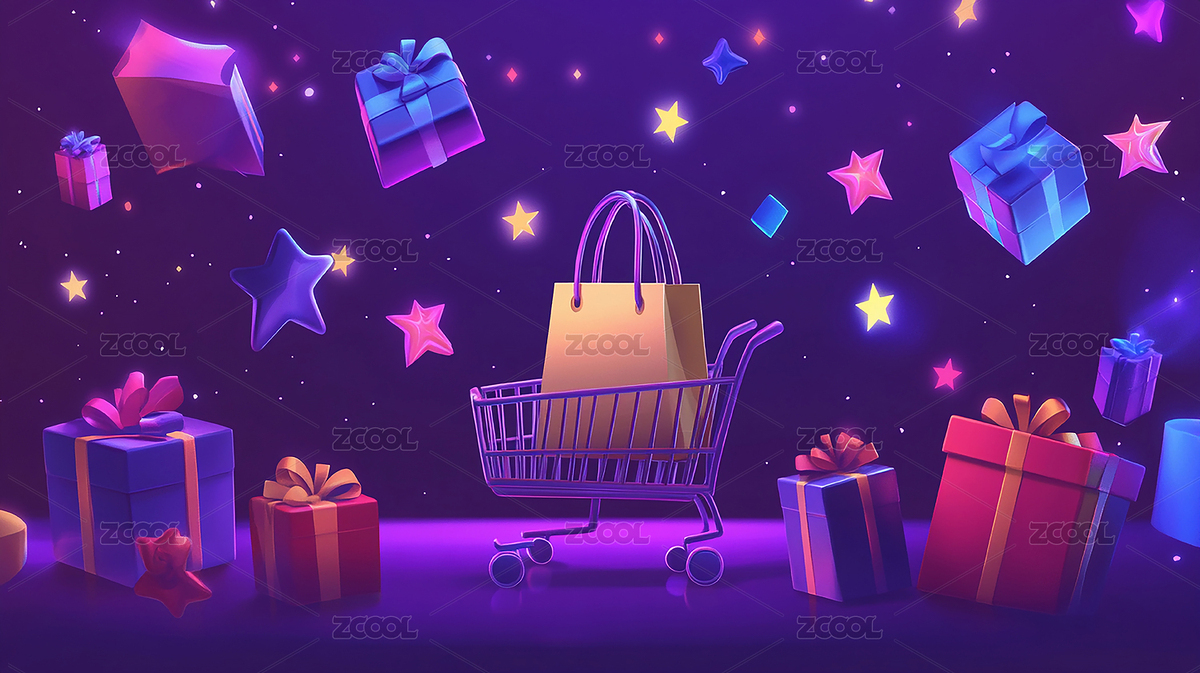 渐变色,电商,购物车,购物,插画,礼物盒,装饰,紫色,唯美