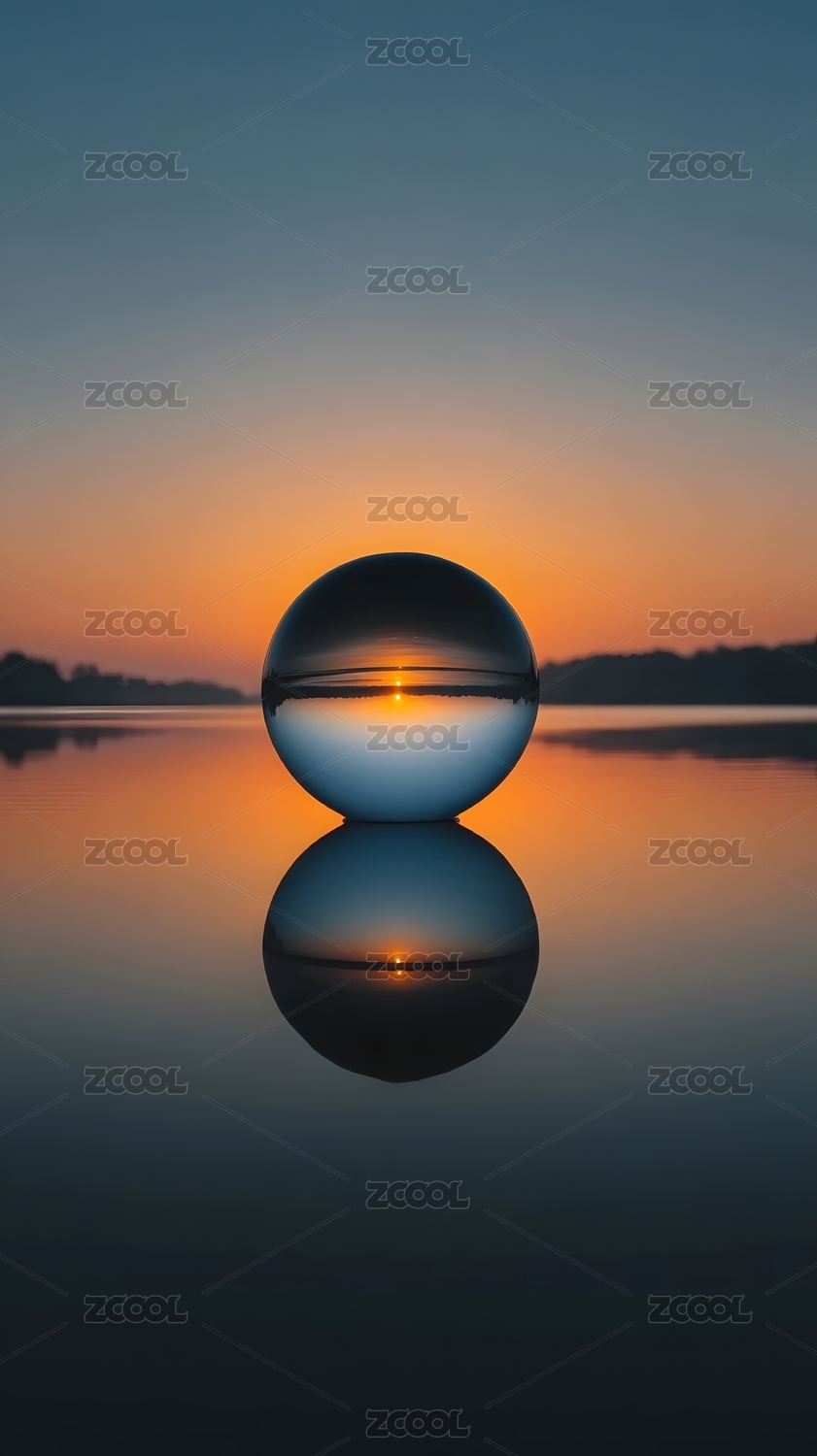 水晶球中的日落倒影
