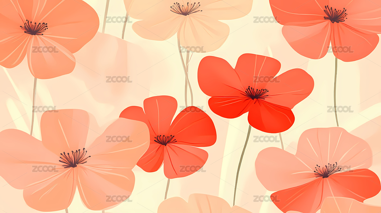 精致的粉色和白色花朵以扁平矢量风格绘制