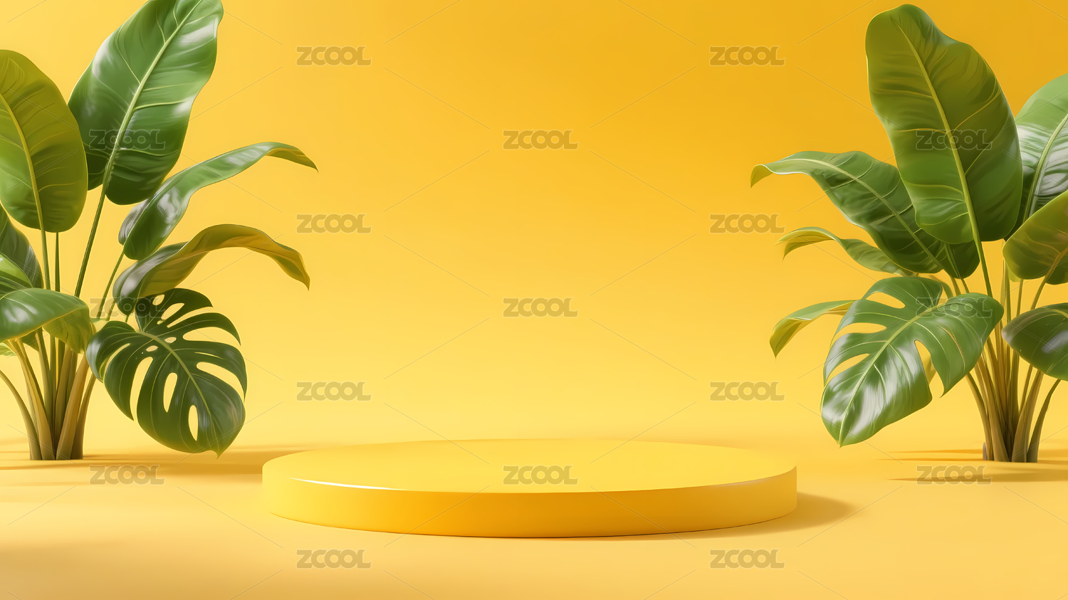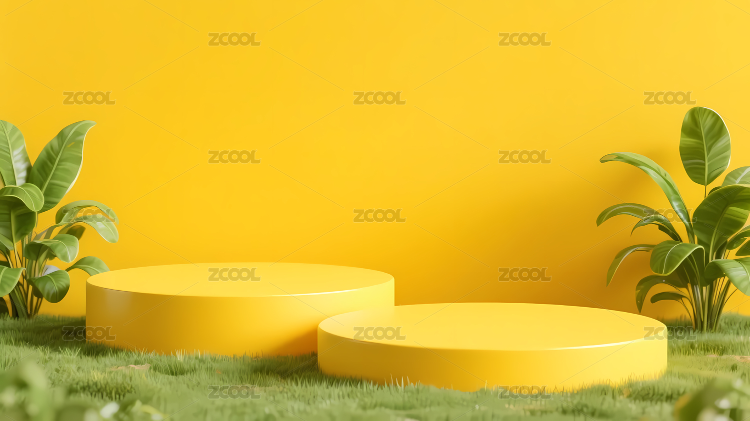 黄色圆形平台绿色植物