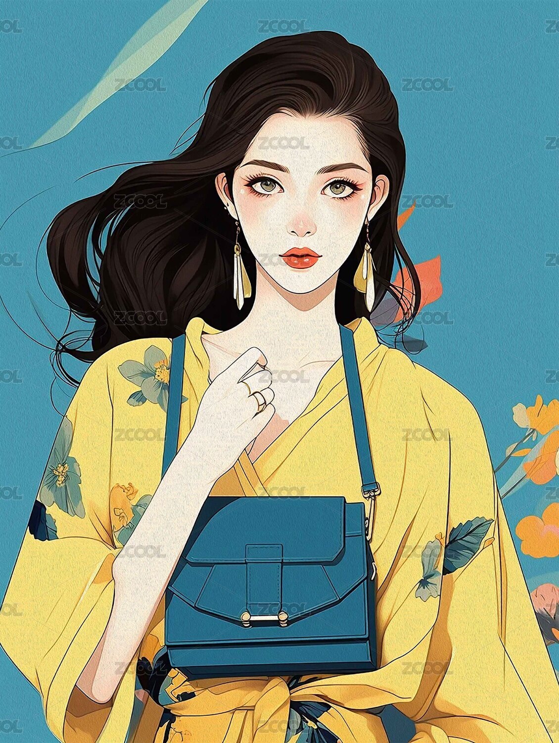 女孩,女模特,包包,包,时尚,搭配,服饰,服装设计,撞色,油画