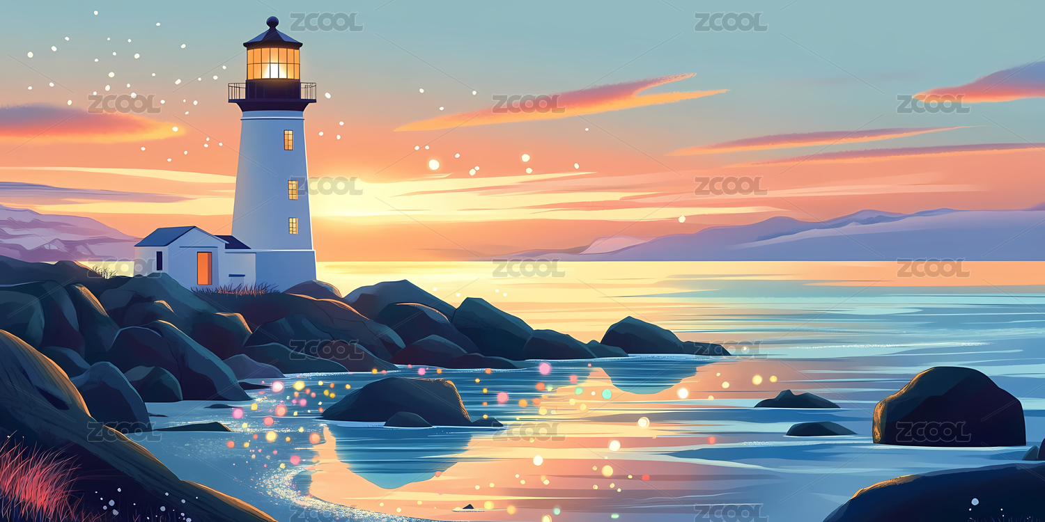灯塔,海边,海,夕阳,日出,日落,风景,旅行,旅游,AIGC202404