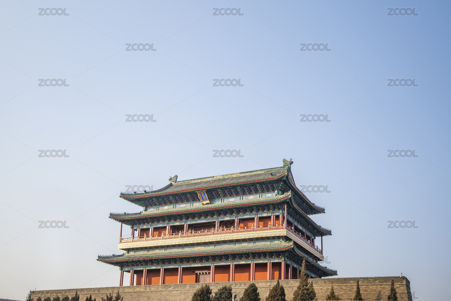 蓝天白云下的北京正阳门城楼(前门城楼)