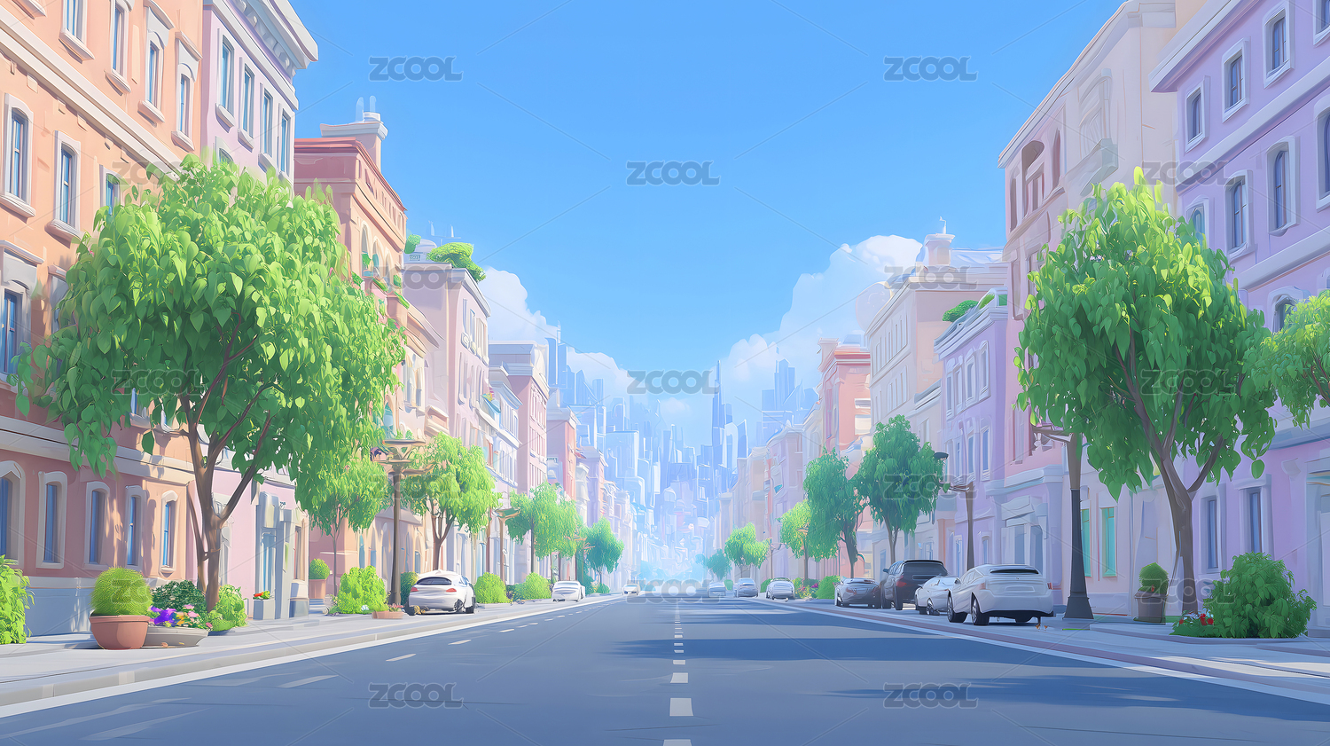 卡通城市街道场景