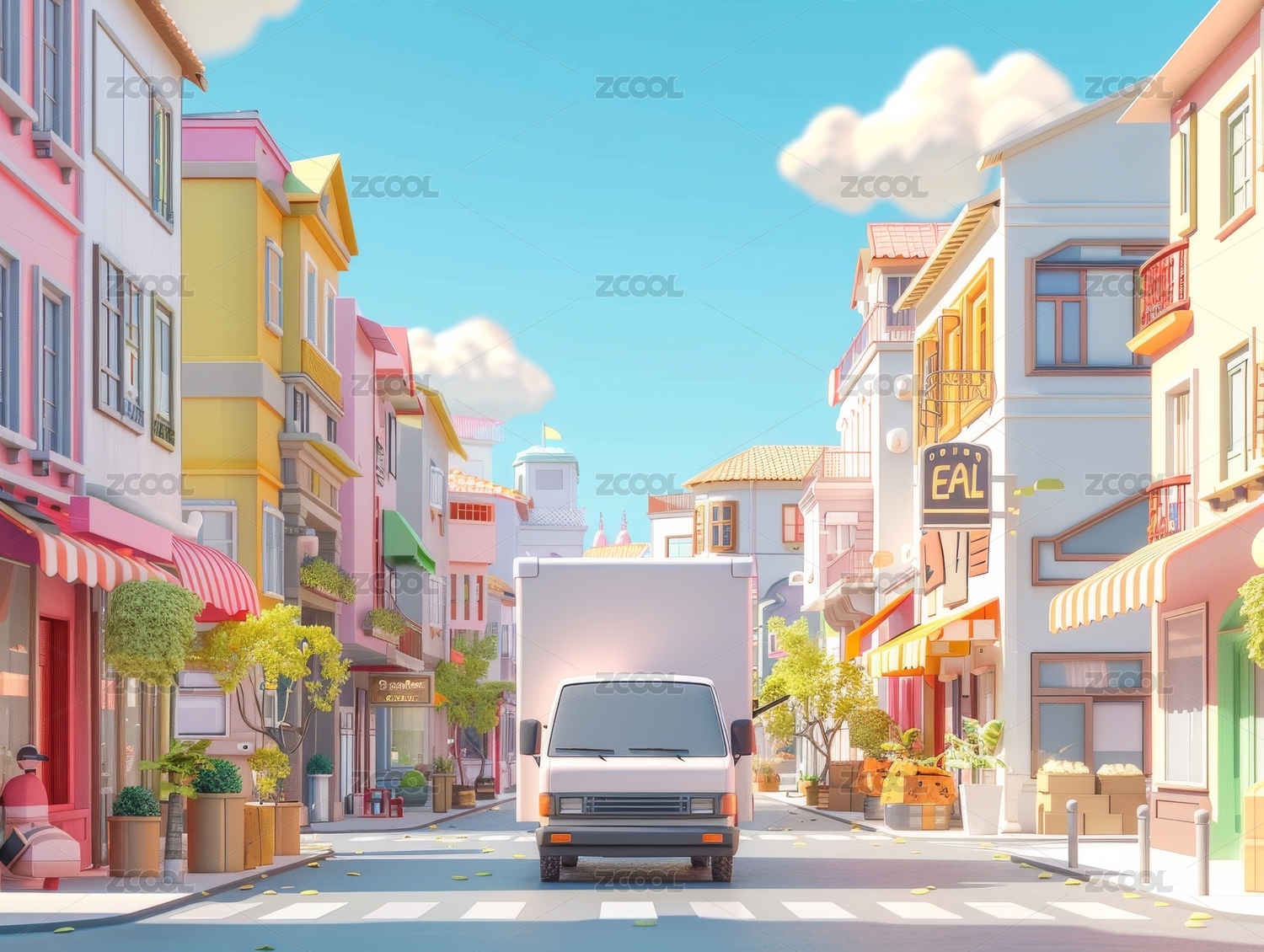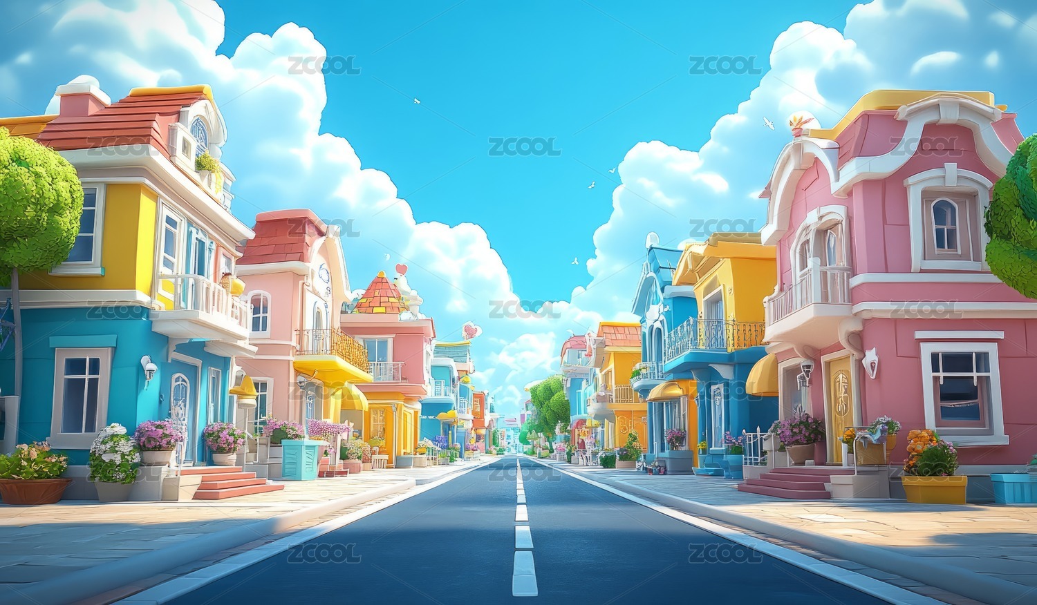 彩色卡通风格街道场景