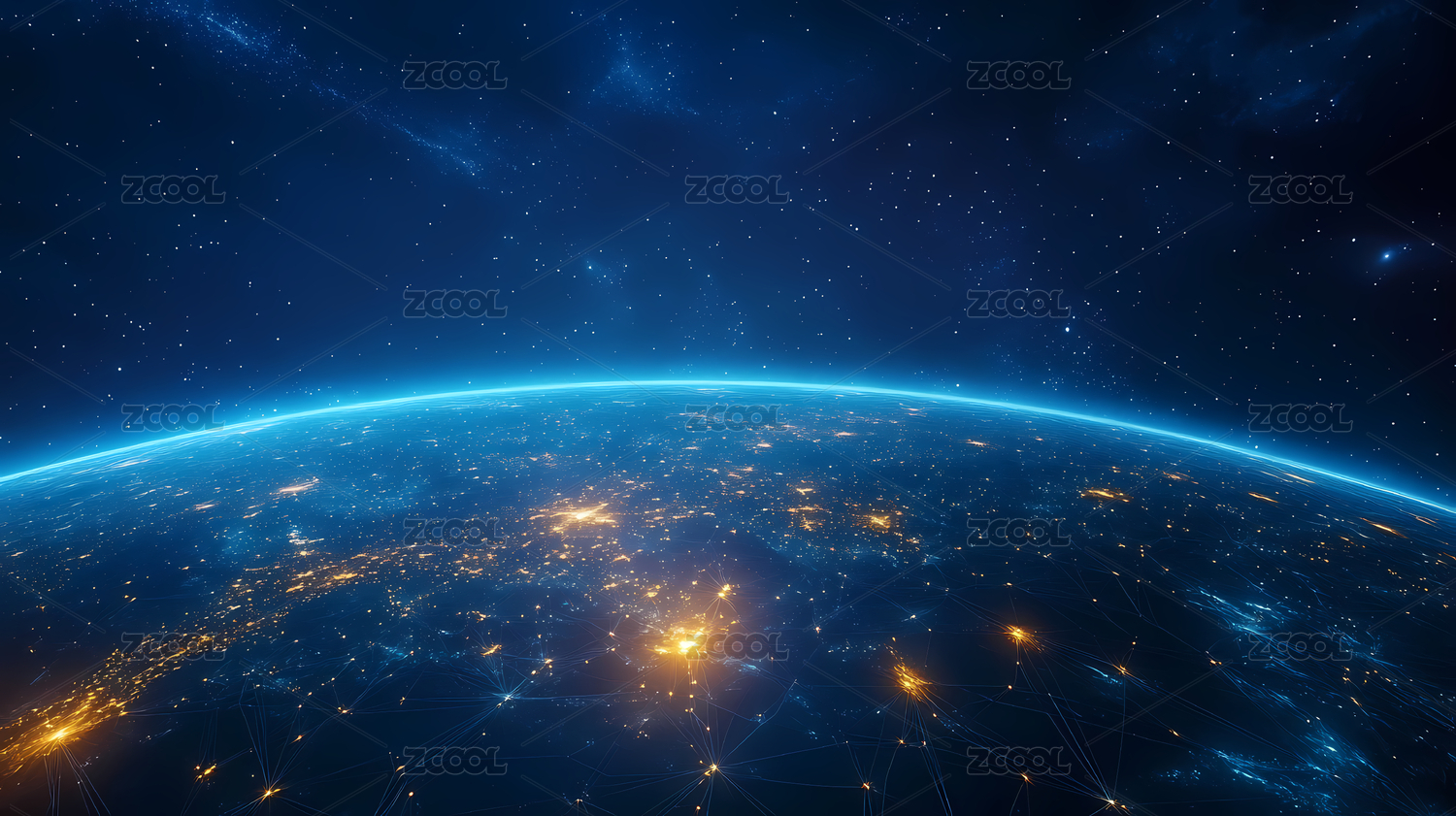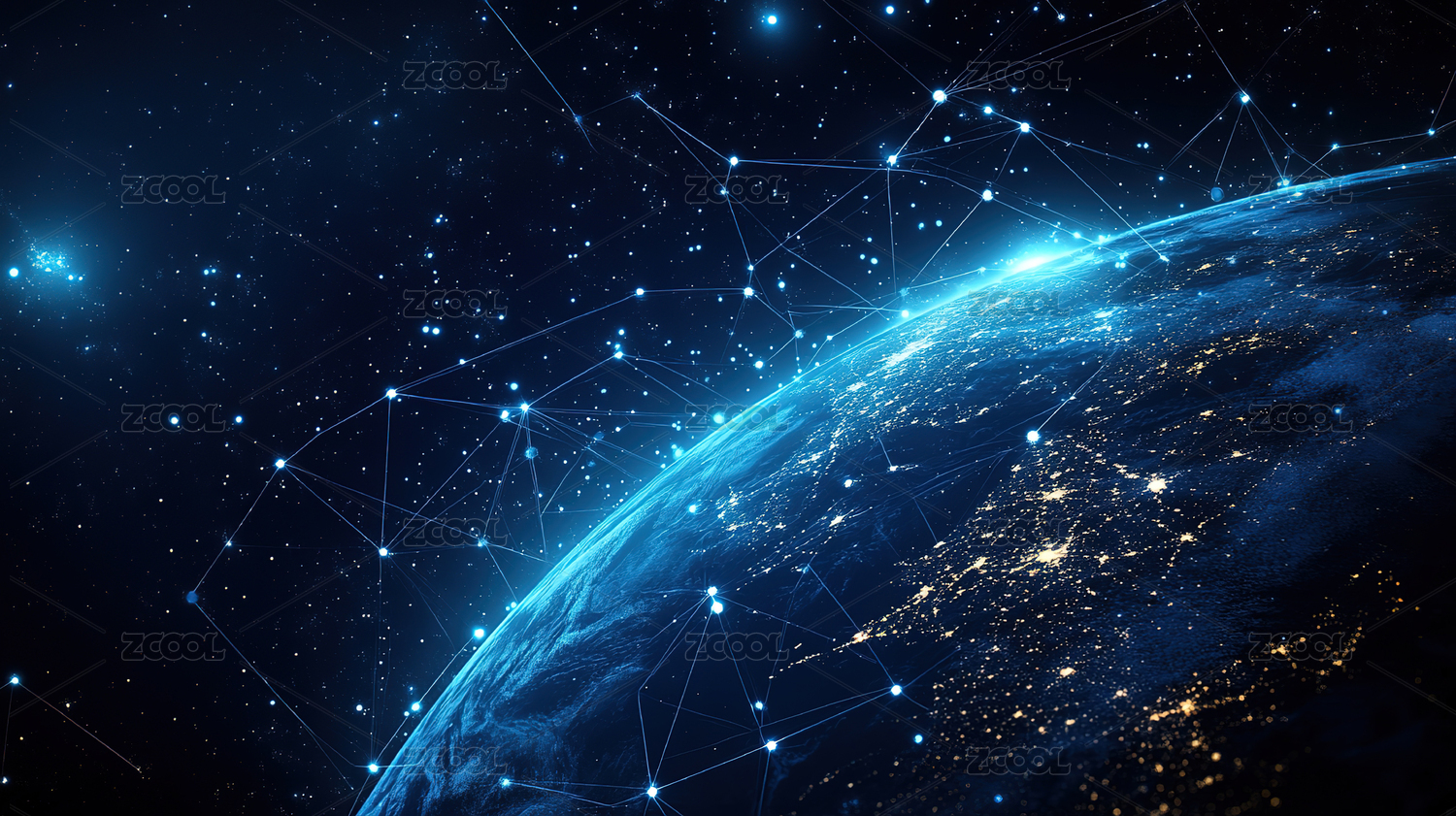 卫星围绕地球编织的发光网格
