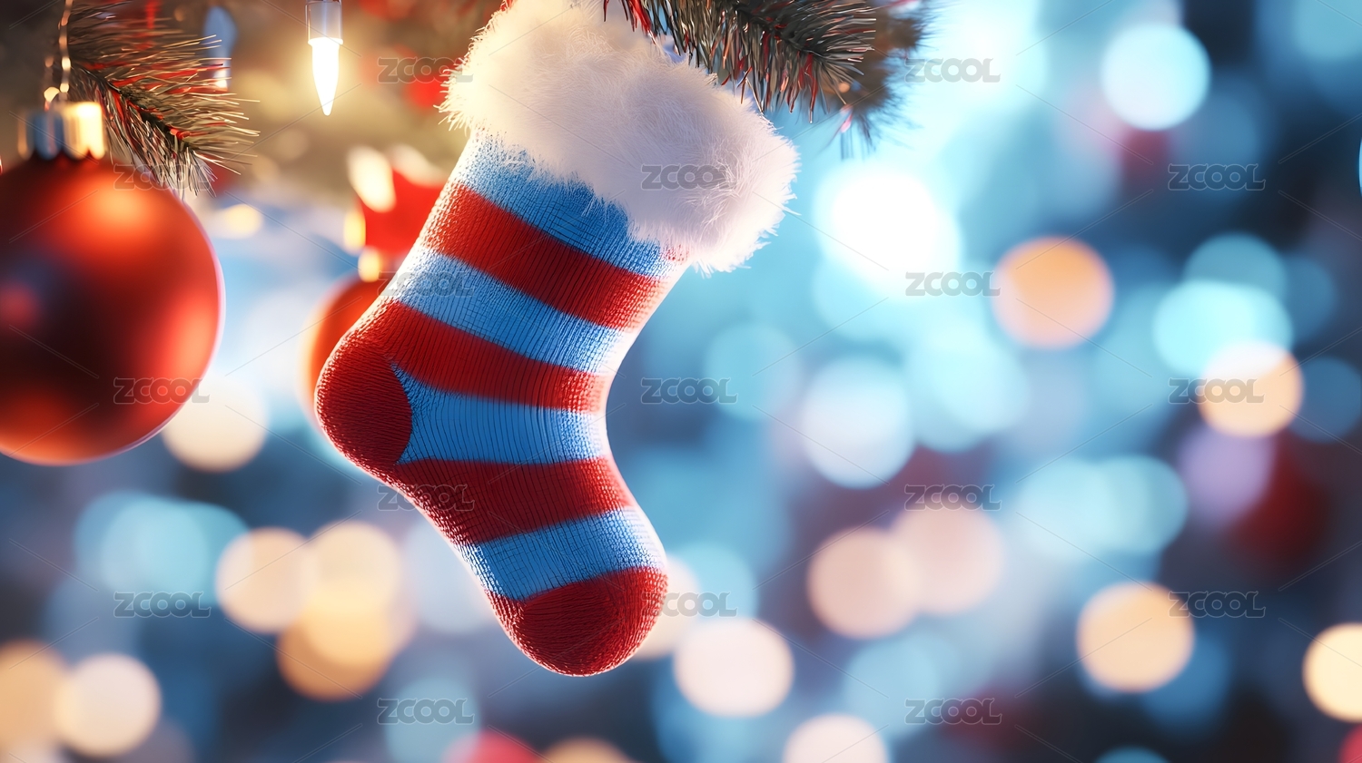 节日氛围的蓝树白袜子