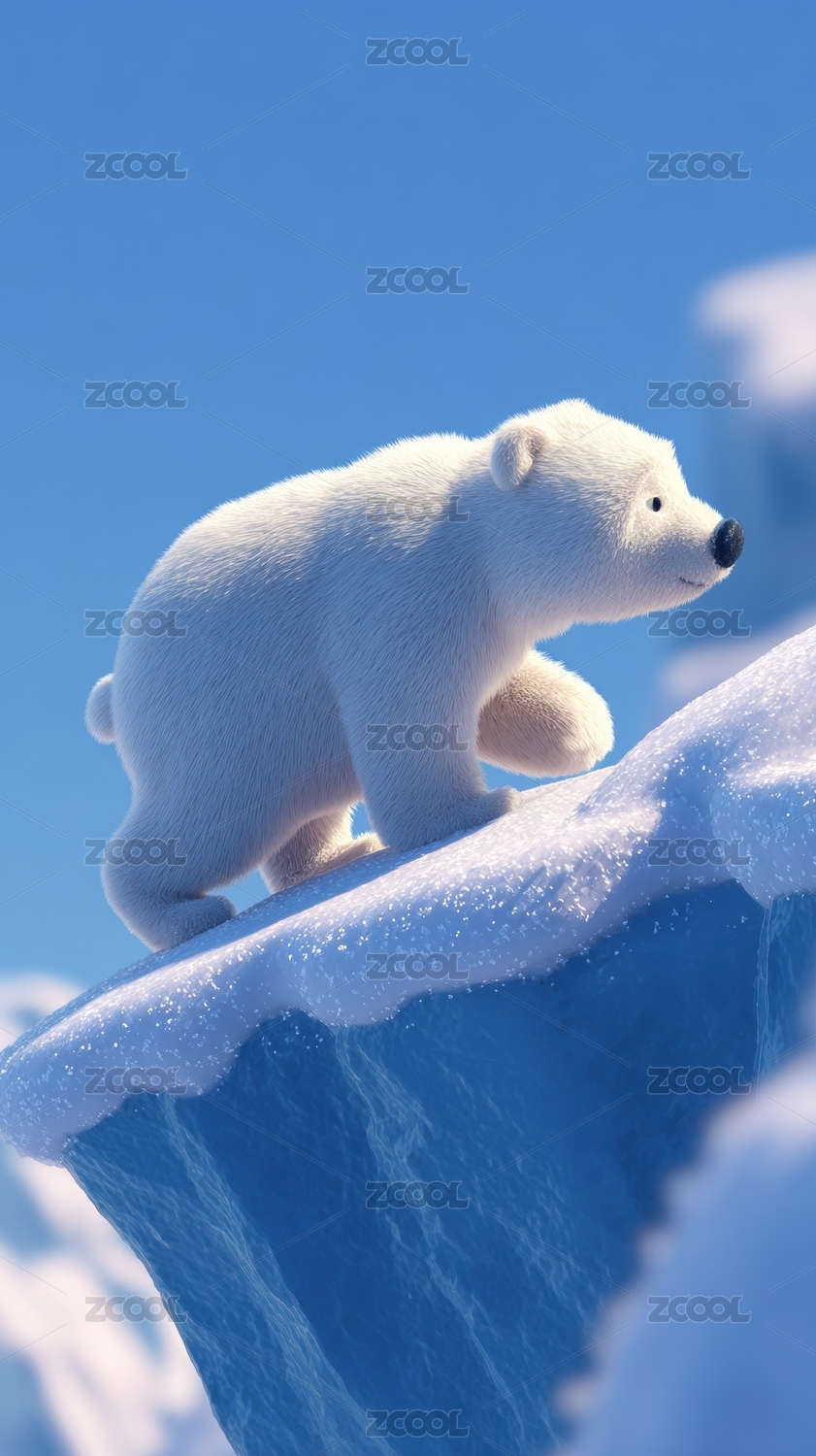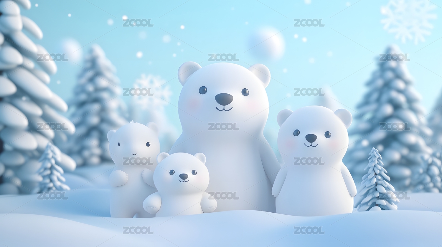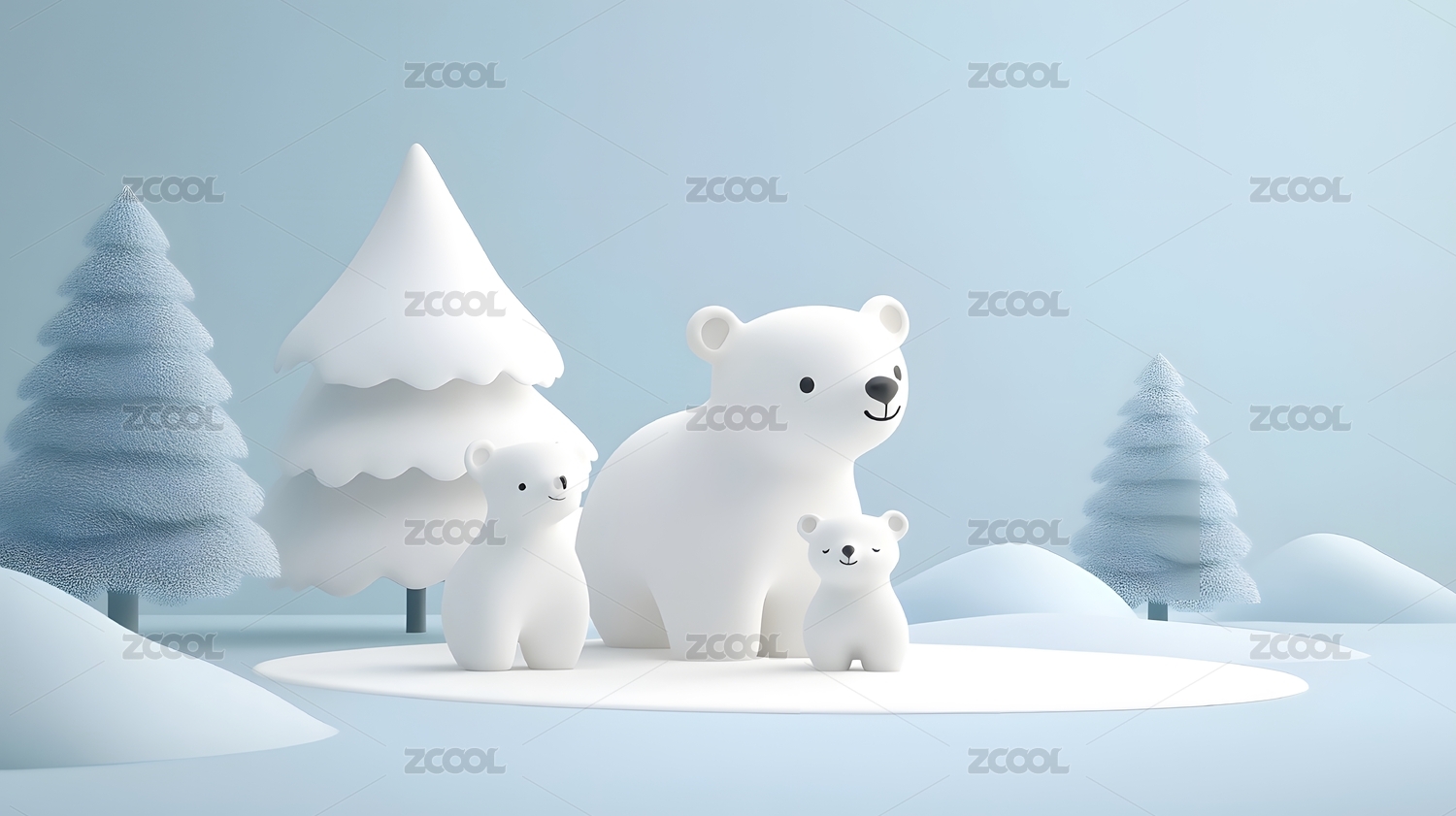 北极熊可爱唯美野生动物3D卡通插画壁纸