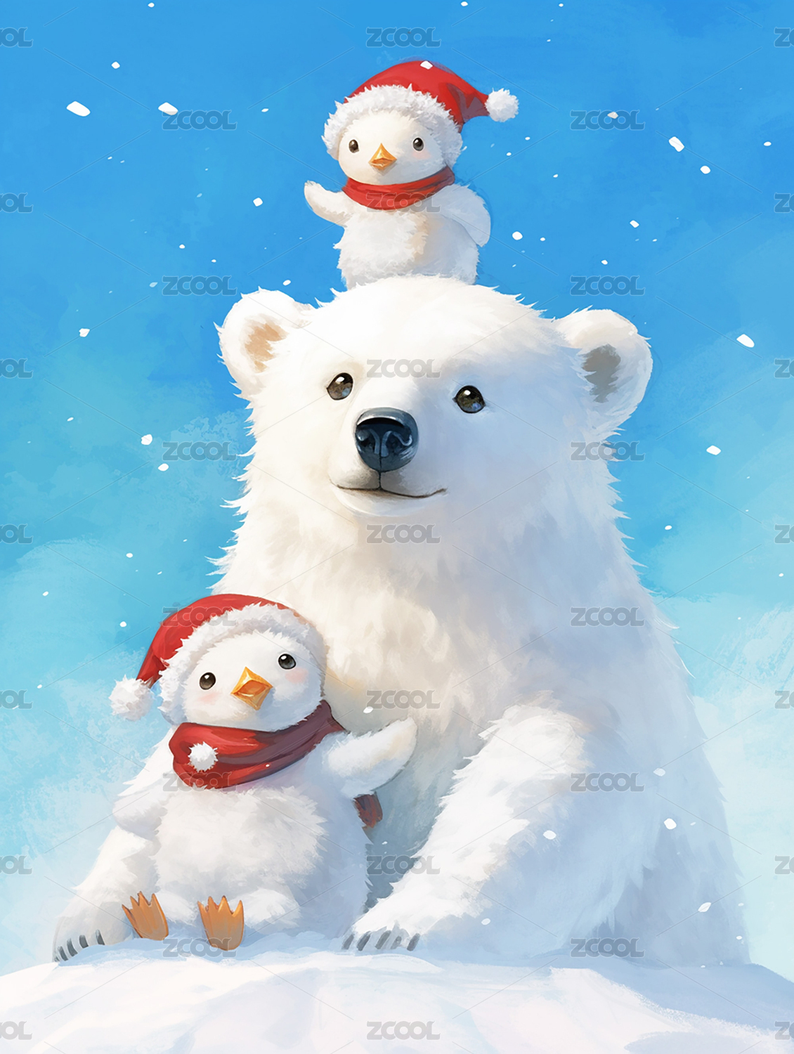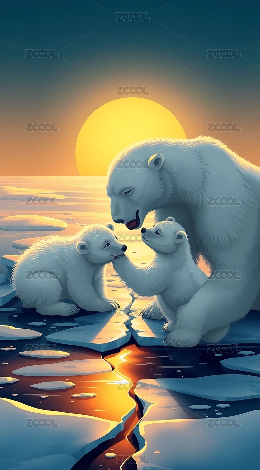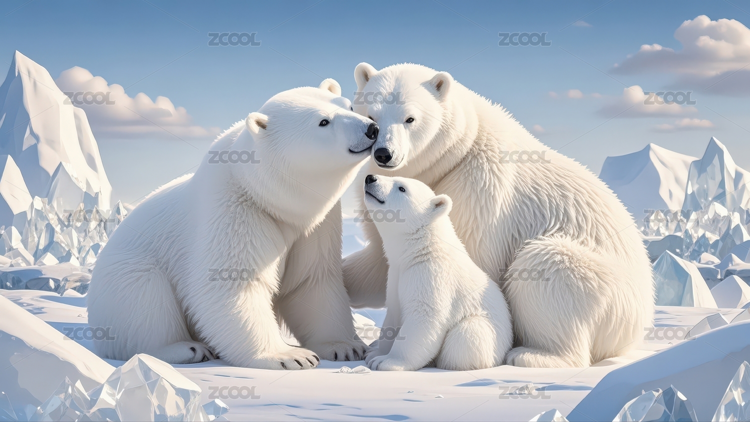 北极熊可爱唯美野生动物3D卡通插画壁纸