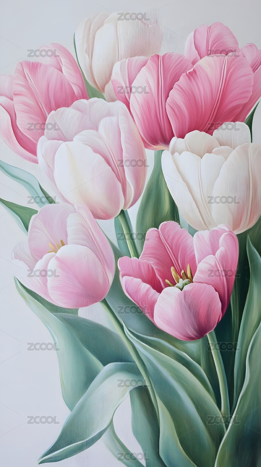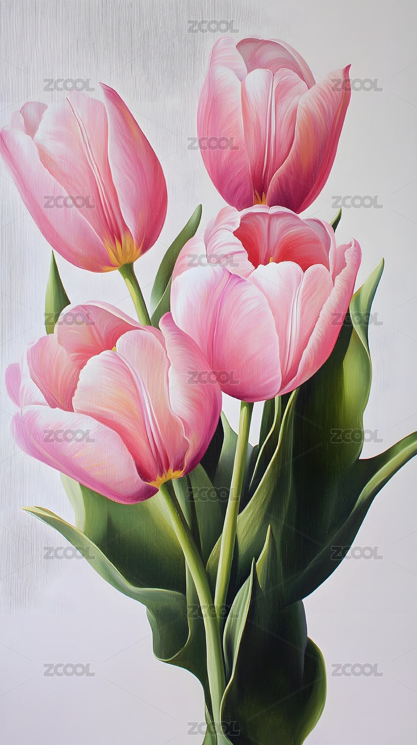 郁金香,花卉,油画,静物,粉色,花瓣,植物,艺术,绘画,质感