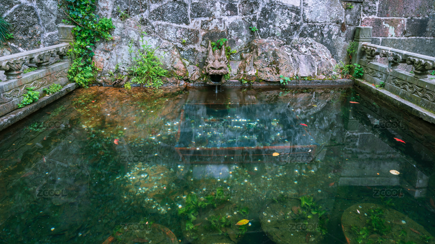 中国浙江省杭州市六和塔内的龙头喷水许愿池