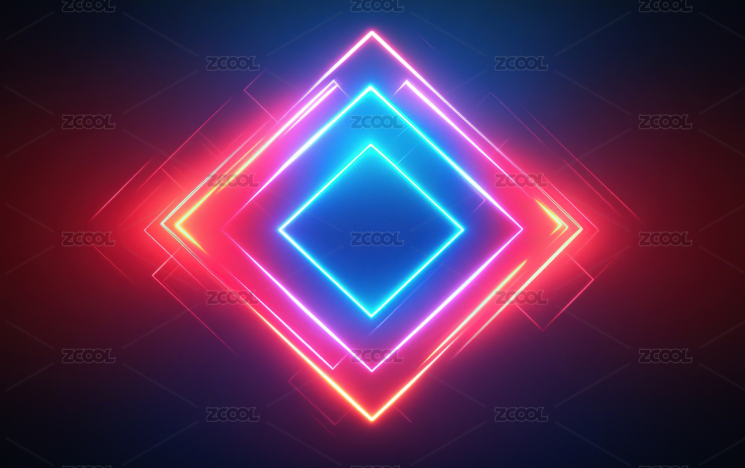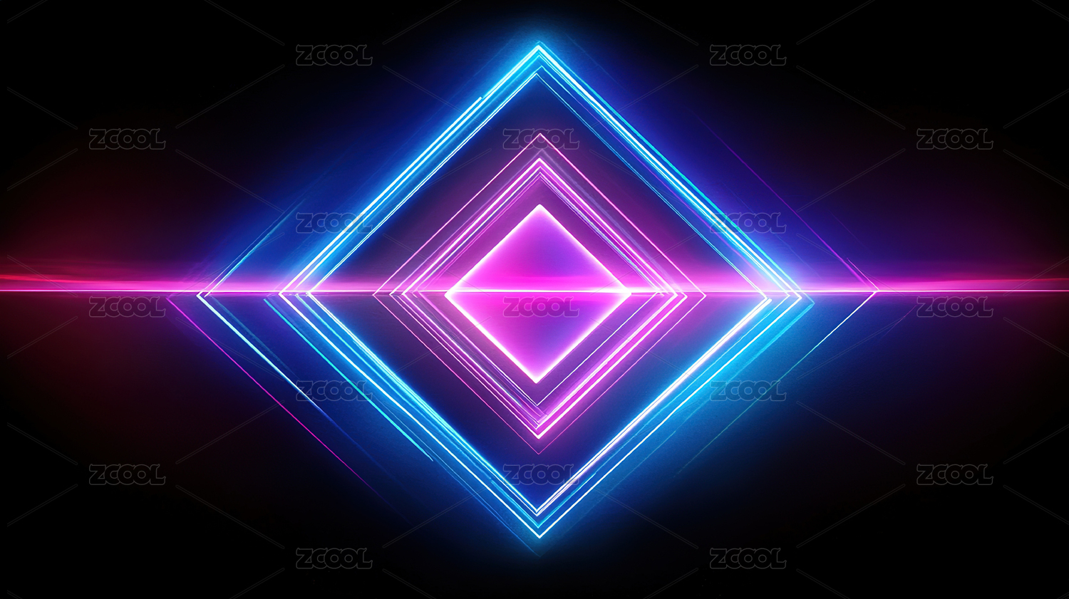 红蓝色霓虹灯环绕构成的发光通道隧道