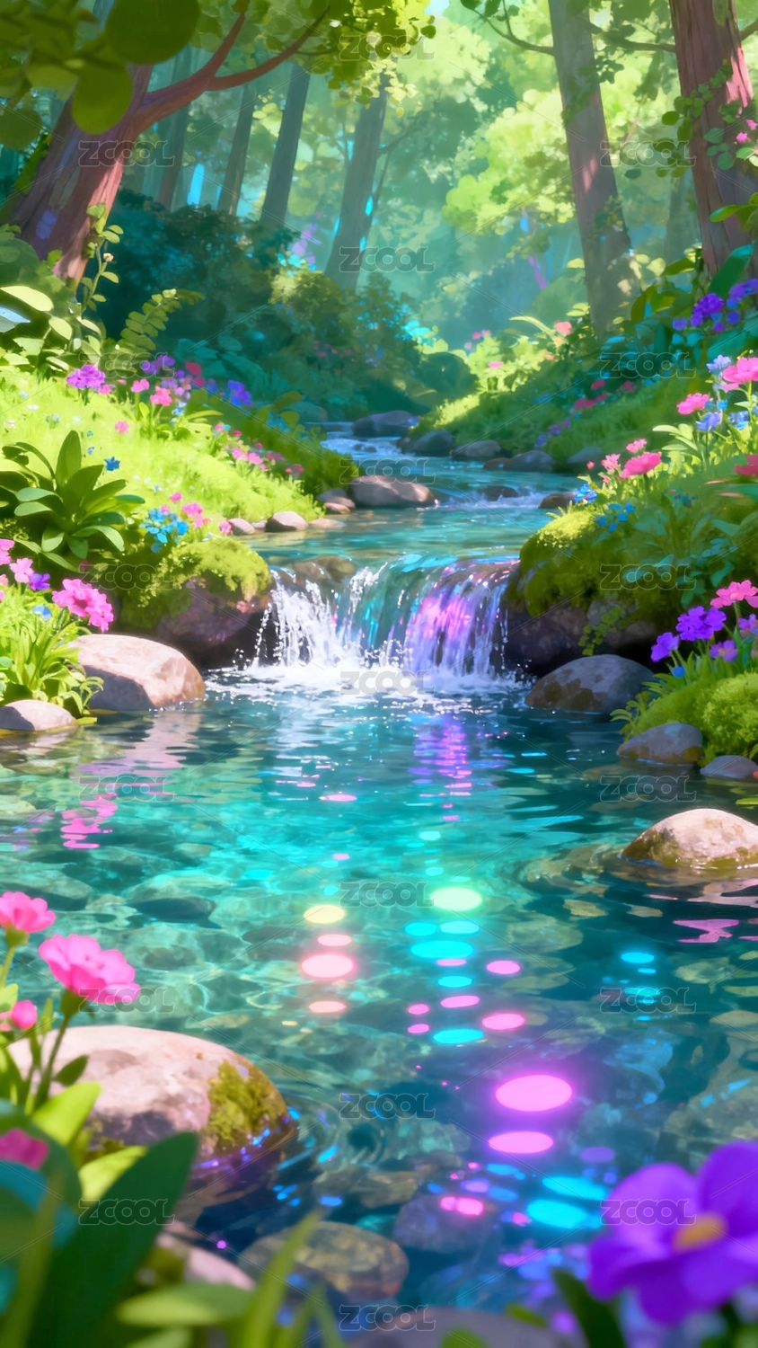 森林溪流梦幻自然场景