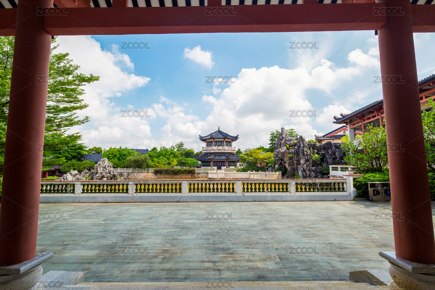 广东广州文化馆传统亭台楼阁传统建筑风光