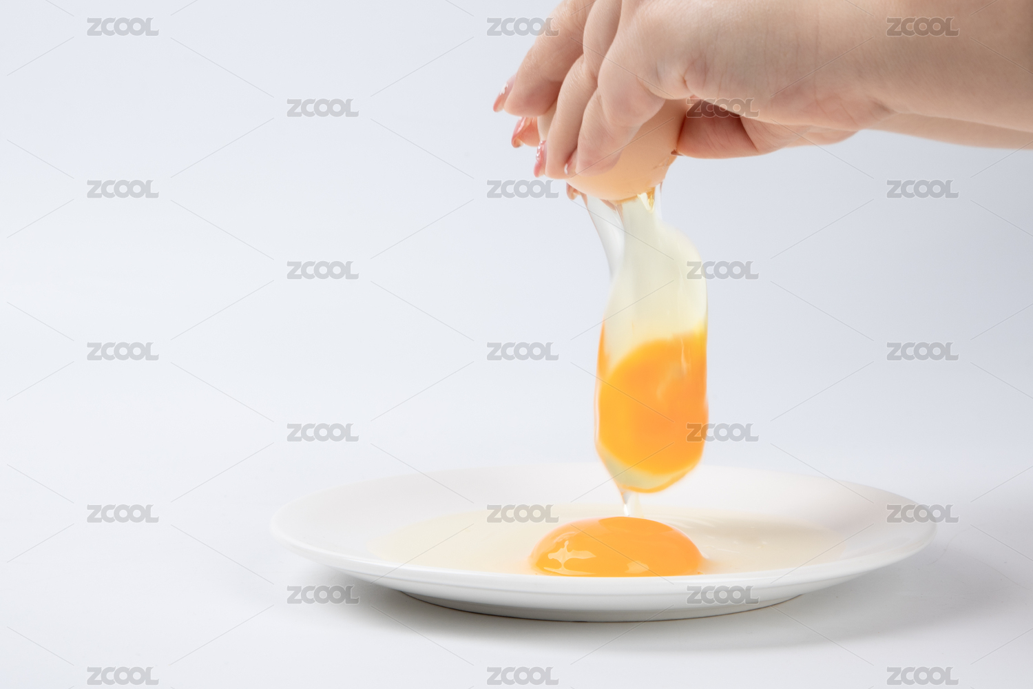 白底上一个打开的鸡蛋液