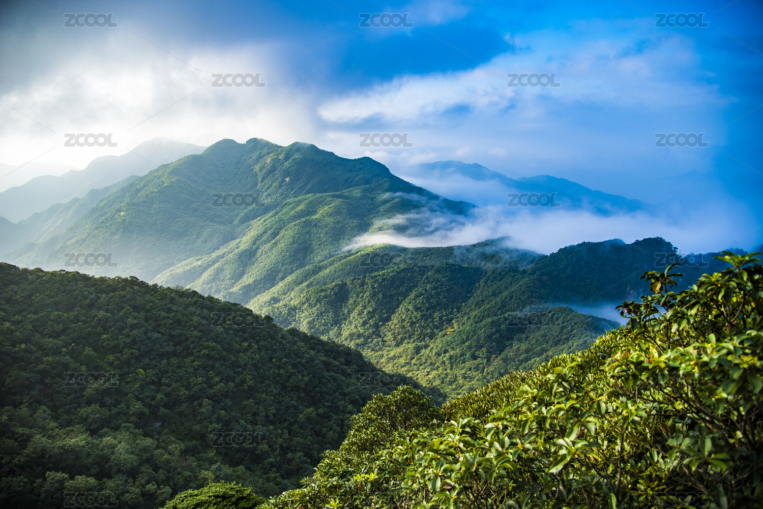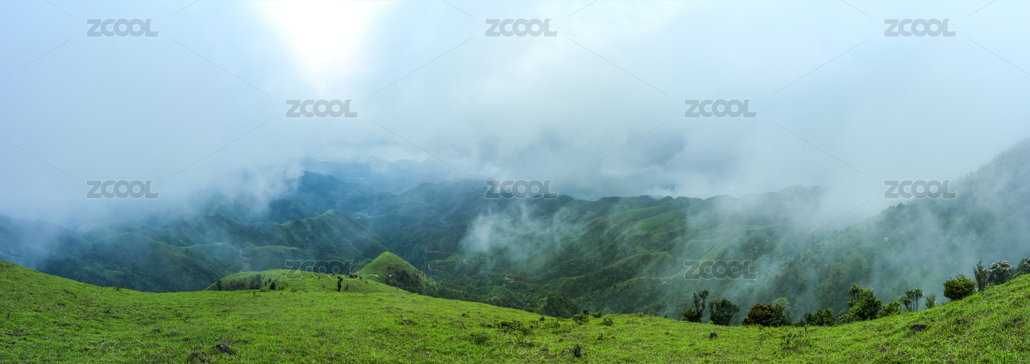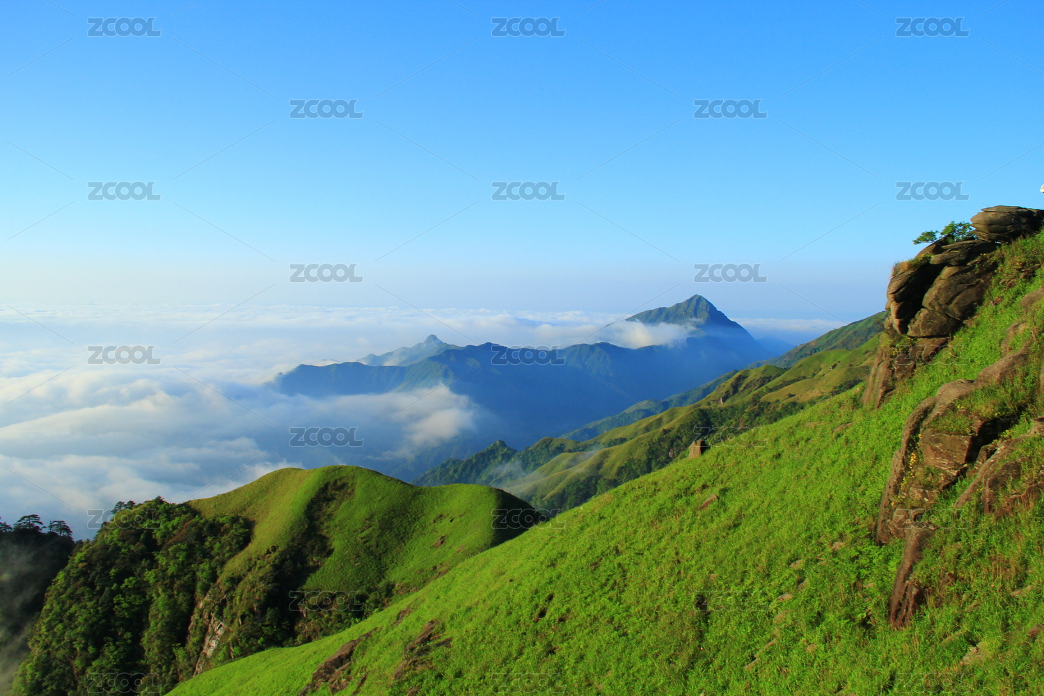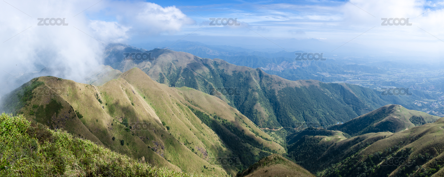 峨眉山金顶俯瞰云雾缭绕的山谷
