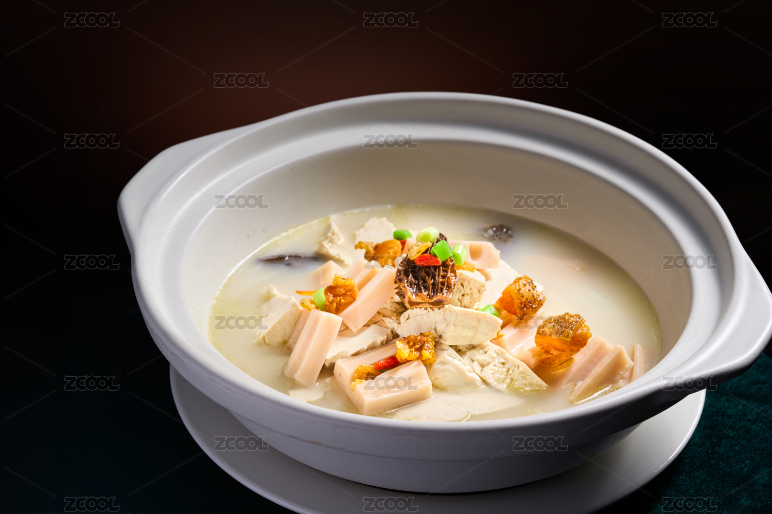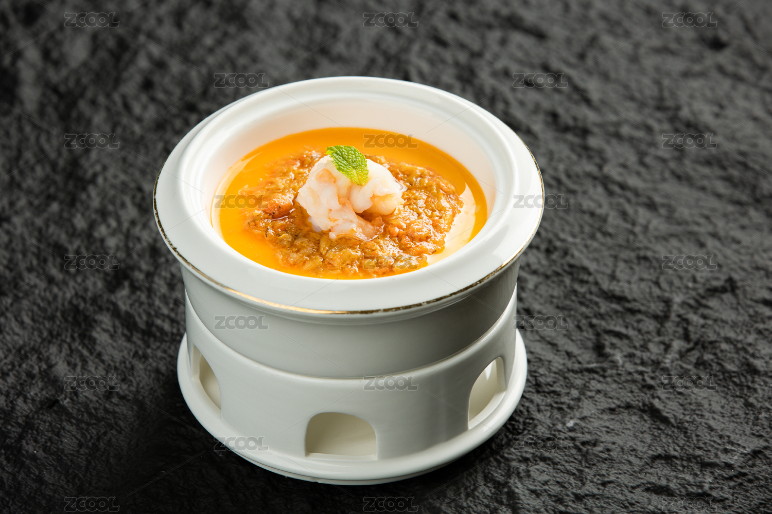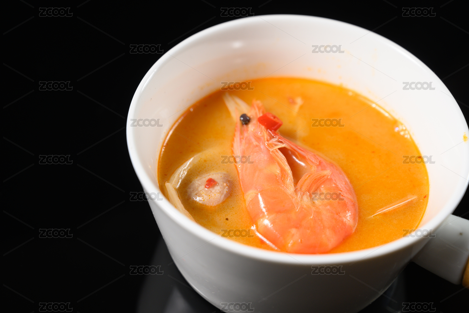 棕色木纹桌上放着一碗冬阴功炖蟹打边炉