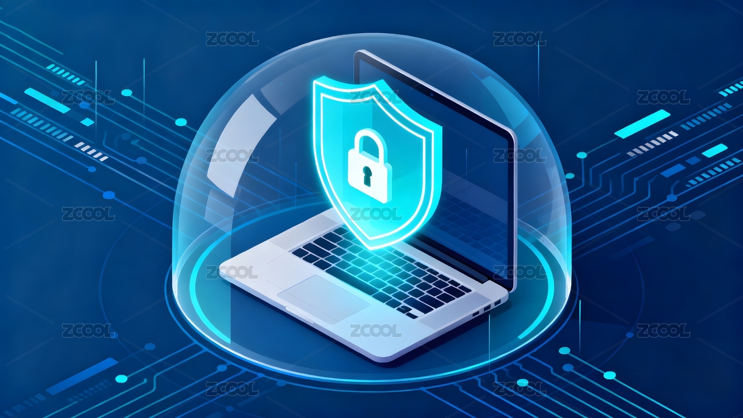 电脑,锁,安全,网络,保护,护盾,信息安全,矢量,扁平,互联网