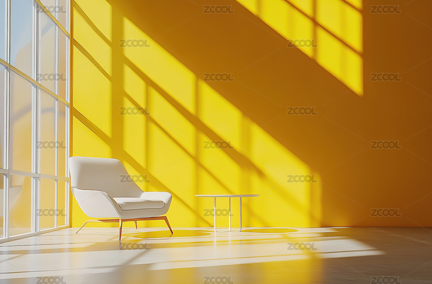 椅子,办公椅,留白,背景,黄色,光影,阳光,窗户光,简约,现代