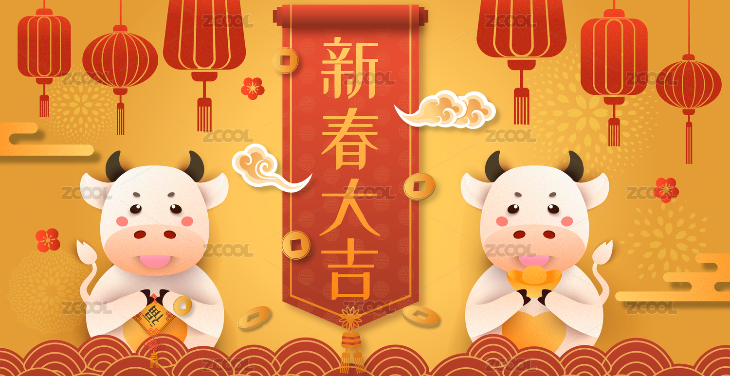 HEZODIAC2021,新年,背景图,banner,卡通牛,2021,牛年,卡通,生肖牛,插画