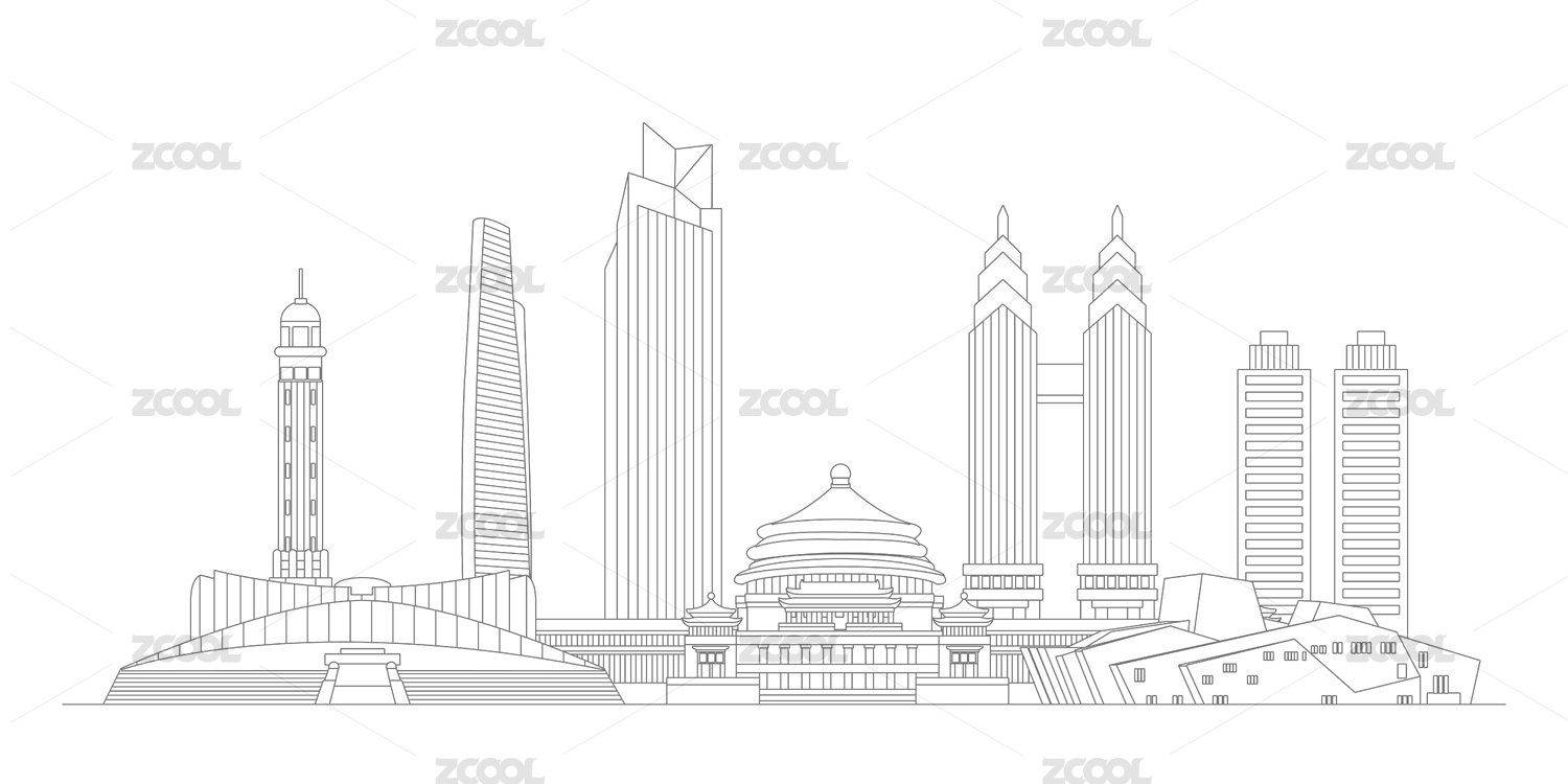 线条轮廓重庆城市地标建筑群