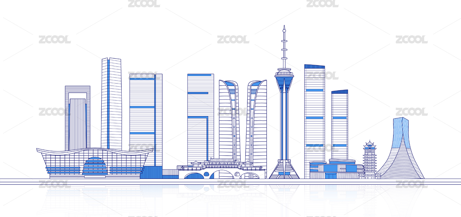 成都城市天际线矢量地标建筑插画